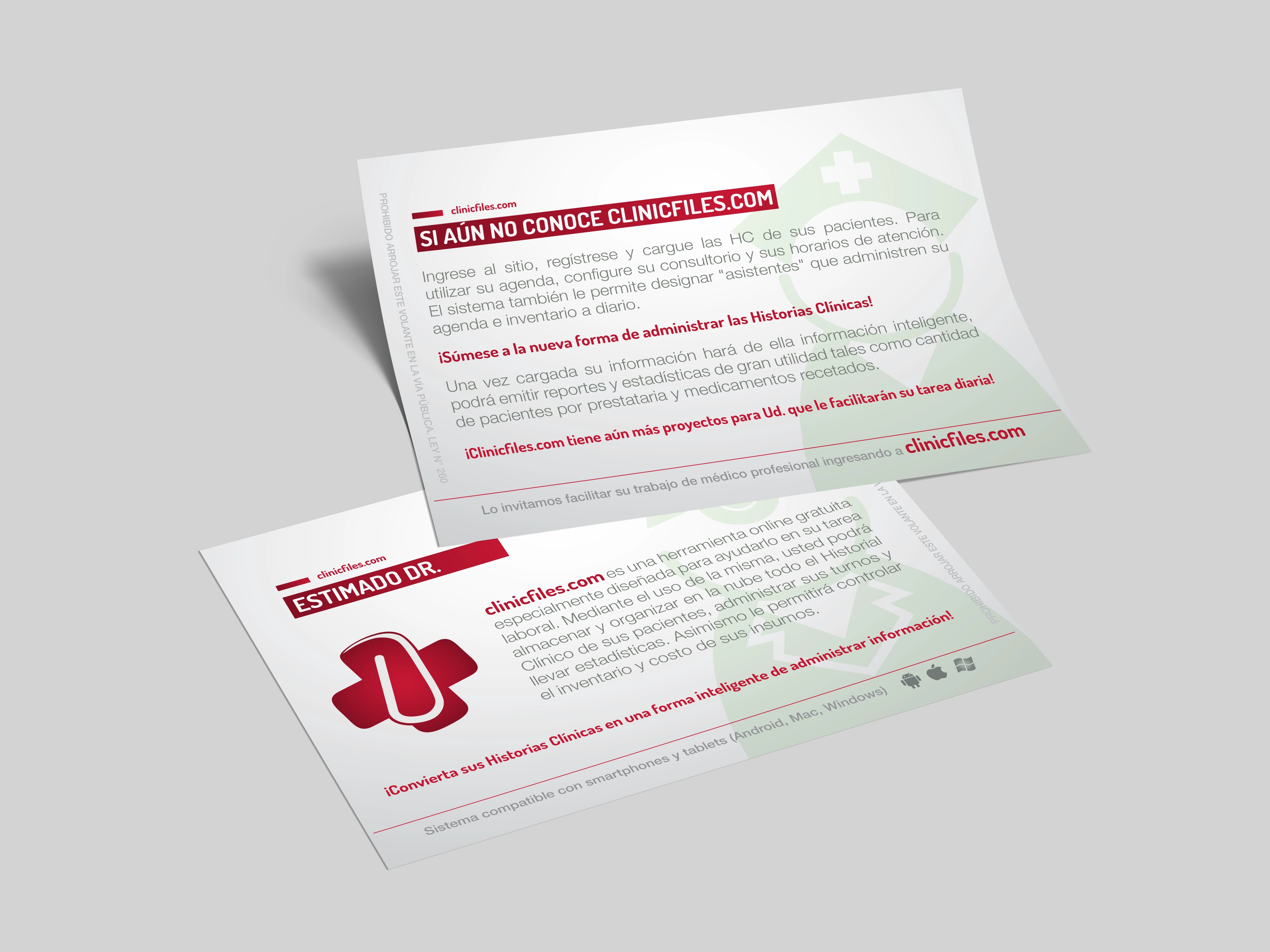 Diseño de identidad para Clinic Files, una plataforma médica online que organiza historias clínicas de forma simple y gratuita. Se trabajó un logo funcional, digital y confiable, junto a piezas gráficas impresas como folletos informativos.