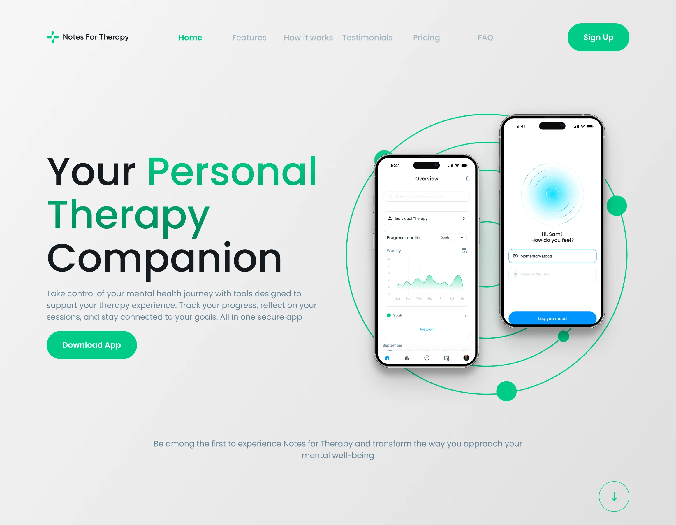 Notes for Therapy is a mental health app that helps patients track their therapy journey. I designed a clean, supportive interface to make personal progress feel clear, approachable, and consistent over time.
