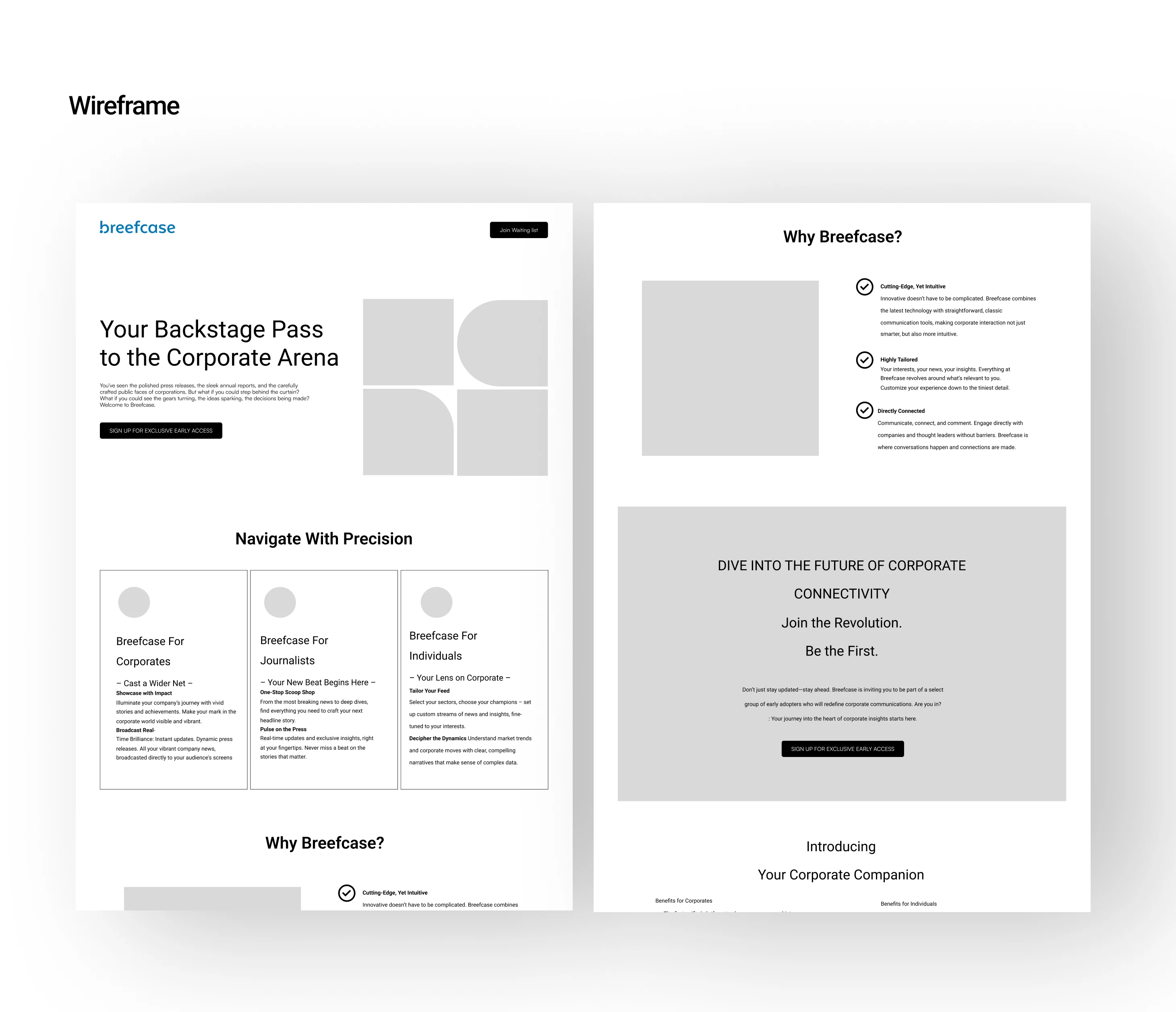 I conducted competitive research and gathered key information from the client to define the structure and value proposition of the landing page. After exploring initial ideas and wireframes in collaboration with the client, I developed the final design in Figma, focusing on usability and clear communication of Breefcase’s benefits. The design was refined through feedback with stakeholders, resulting in an attractive and effective landing page that met the project’s goals.