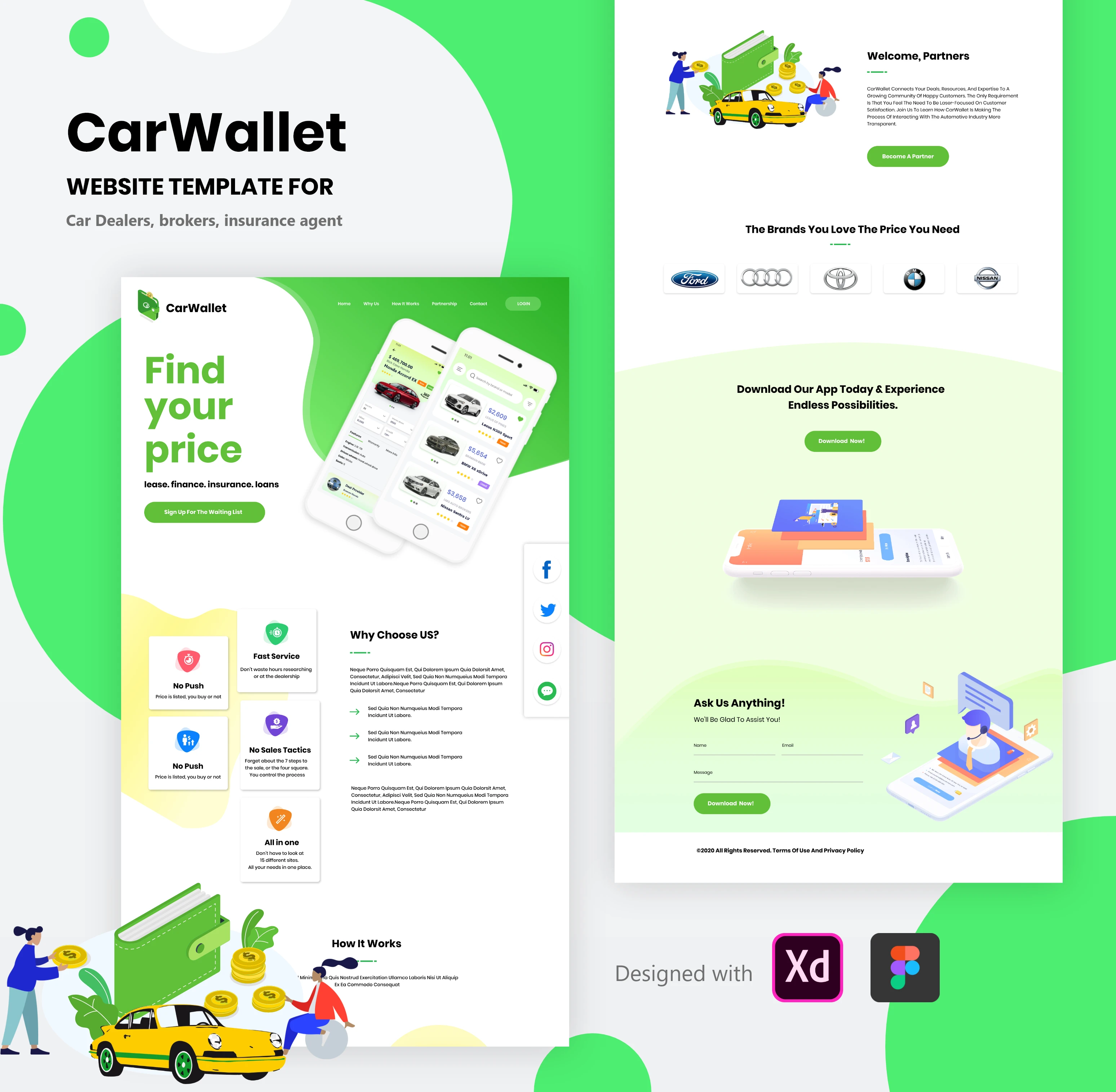 CarWallet website Template for Car Dealers, brokers, insurance agent
