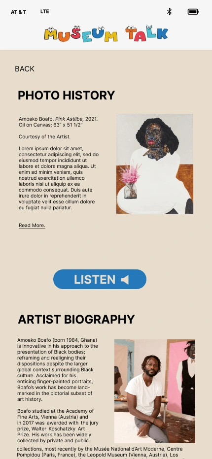 For this project I designed a mobile app and a user-centered UI that makes museums more accessible for those who are visually impaired.