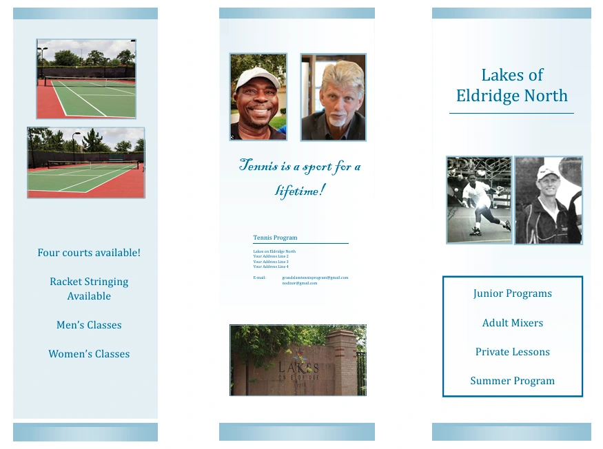 Designed to promote private lessons, seasonal camps, and community events led by two professional coaches, distributed across upscale neighborhoods.
