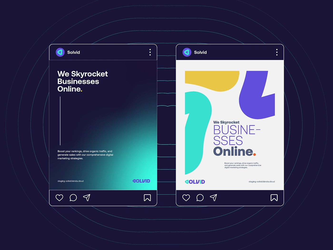 Solvid’s branding blends bold typography, sleek gradients, and modern design, creating a versatile identity that exudes trust, innovation, and impact.
