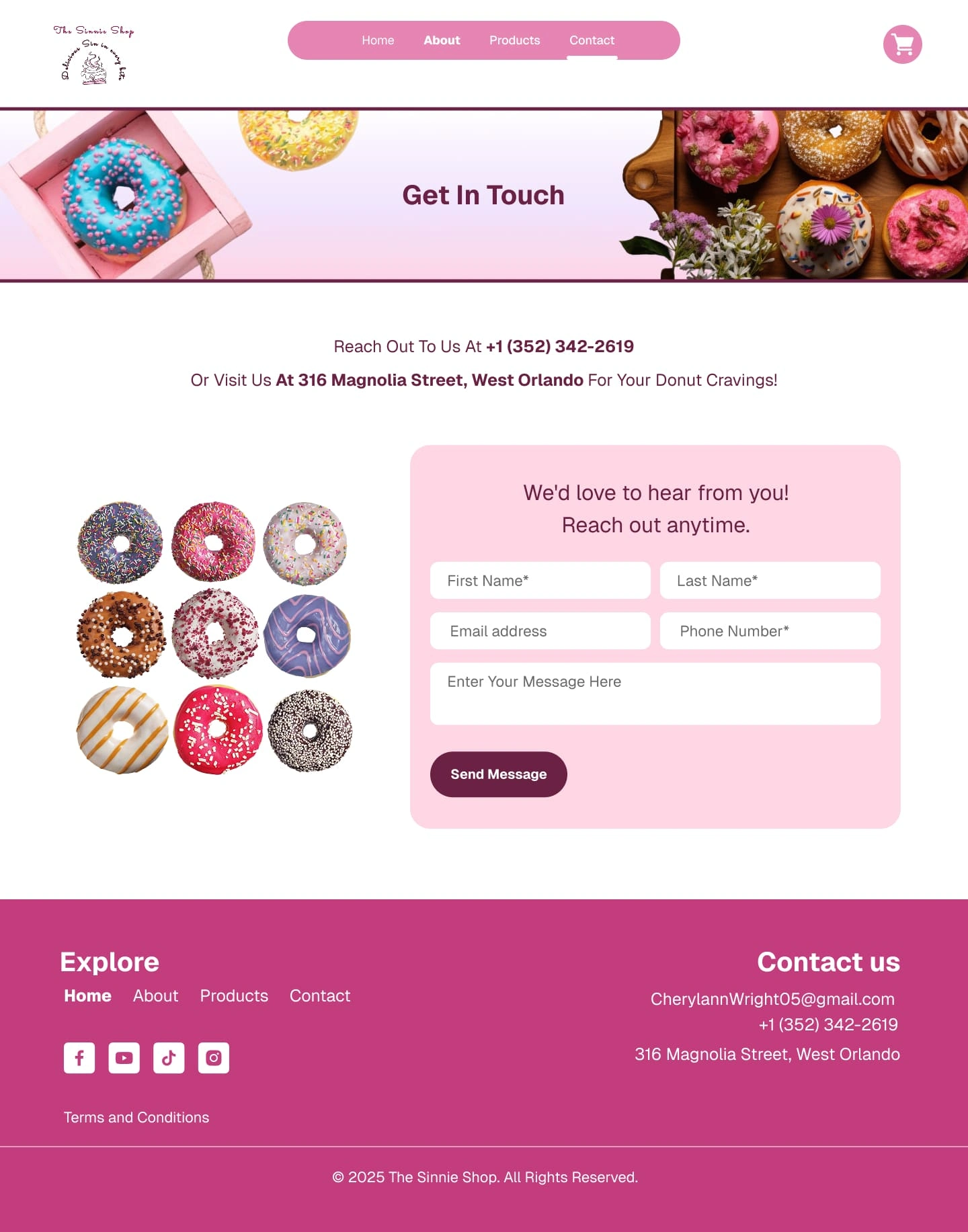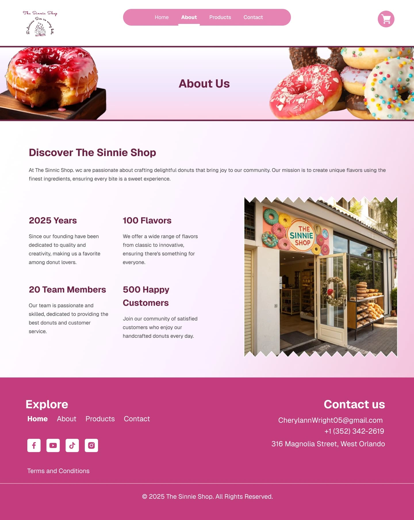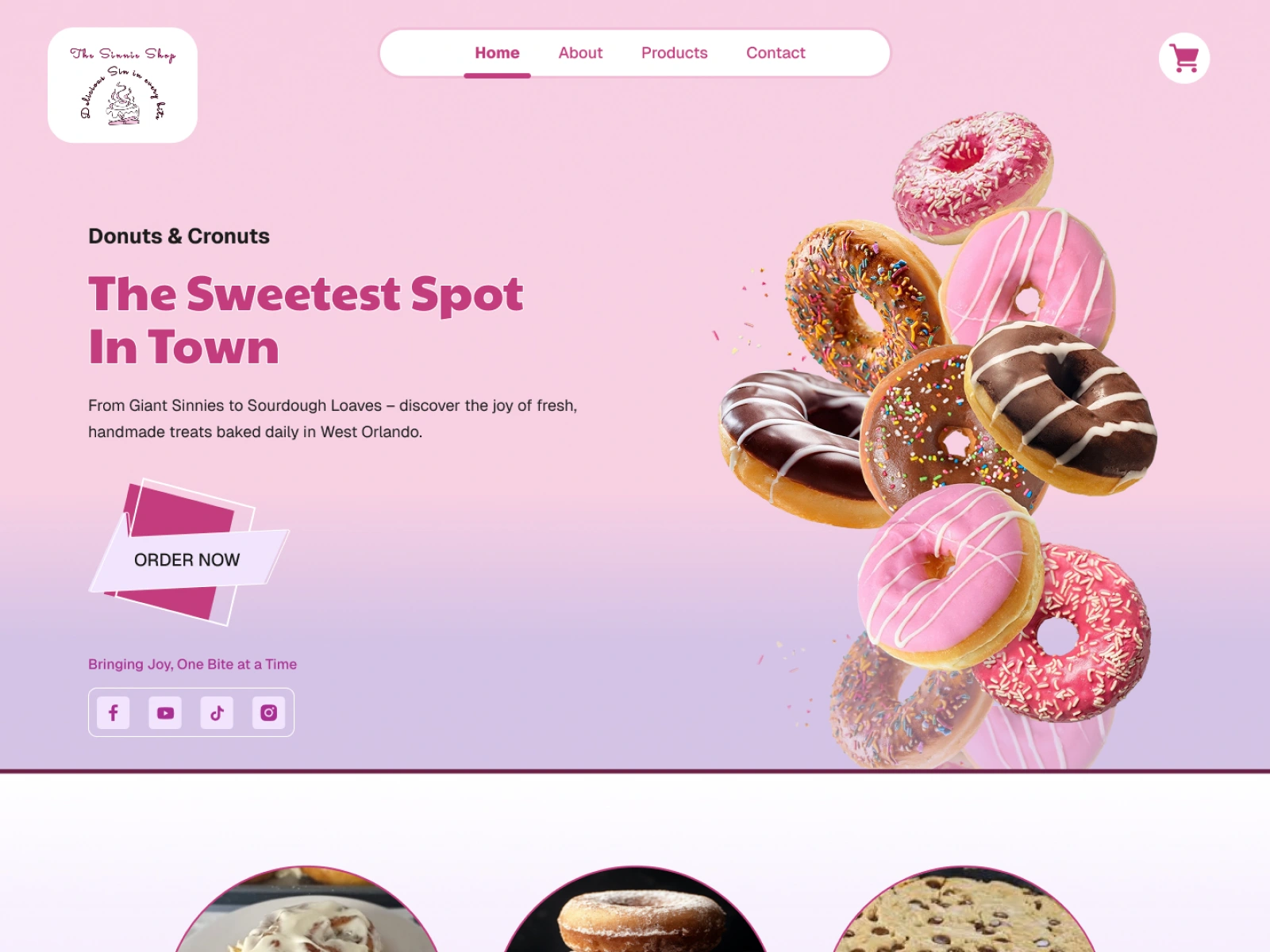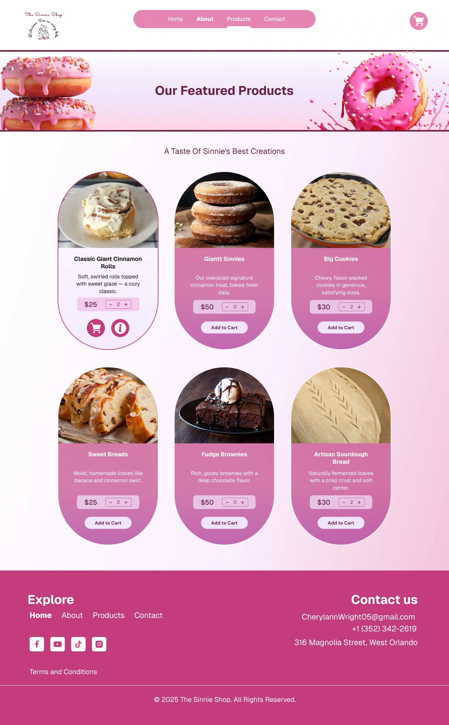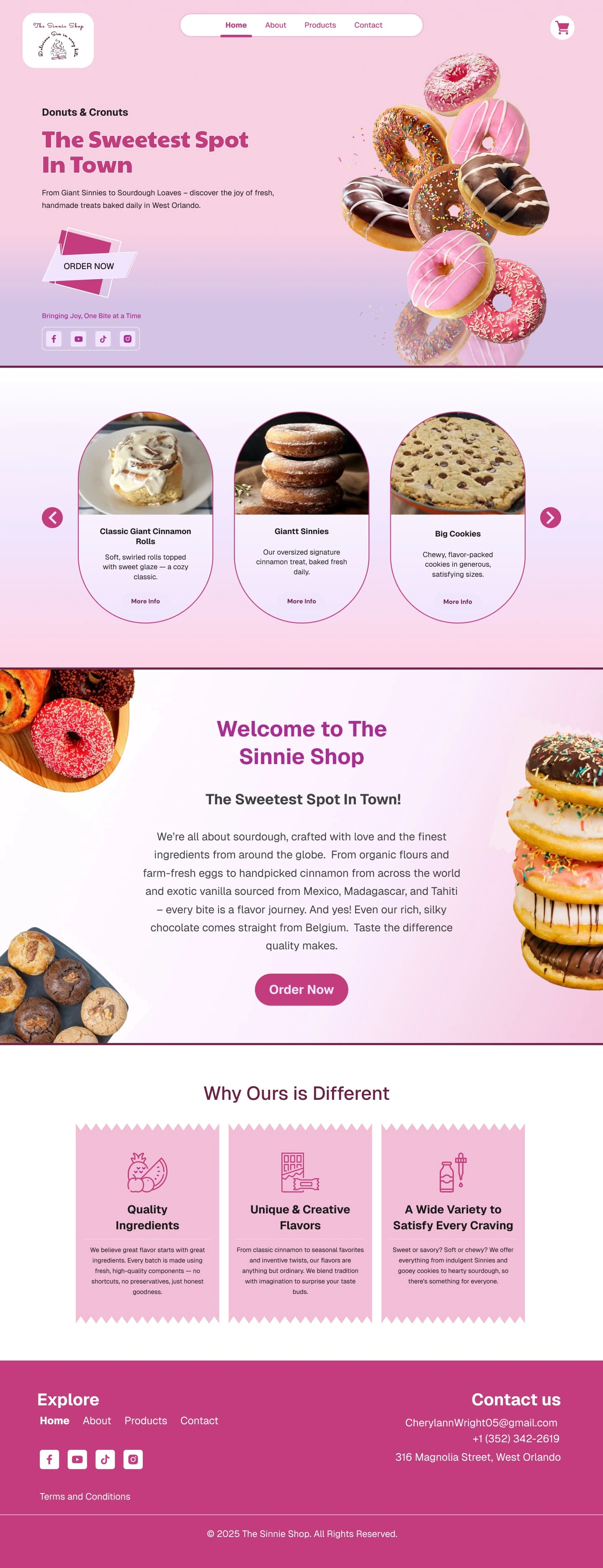 Designed and developed The Sinnie Shop website with sweet, pink-toned UI/UX on WordPress, featuring product pages, smooth navigation, and engaging CTAs.