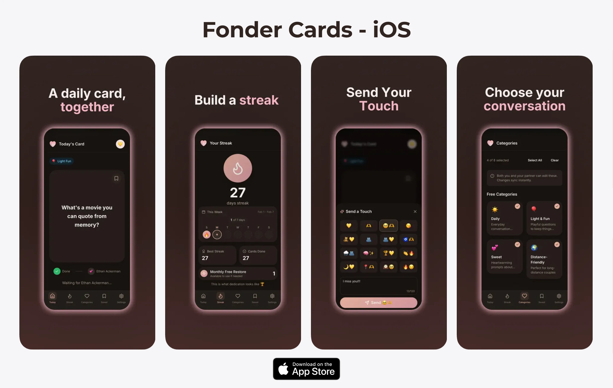 WidgetKit couples app with home screen widgets, shared photo cards, and daily reminders. SwiftUI + WidgetKit + Firebase.