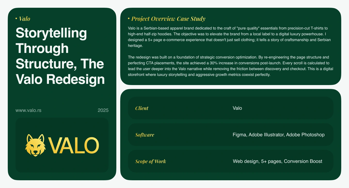 Valo is a Serbian-based apparel brand dedicated to the craft of "pure quality" essentials from precision-cut T-shirts to high-end half-zip hoodies.
