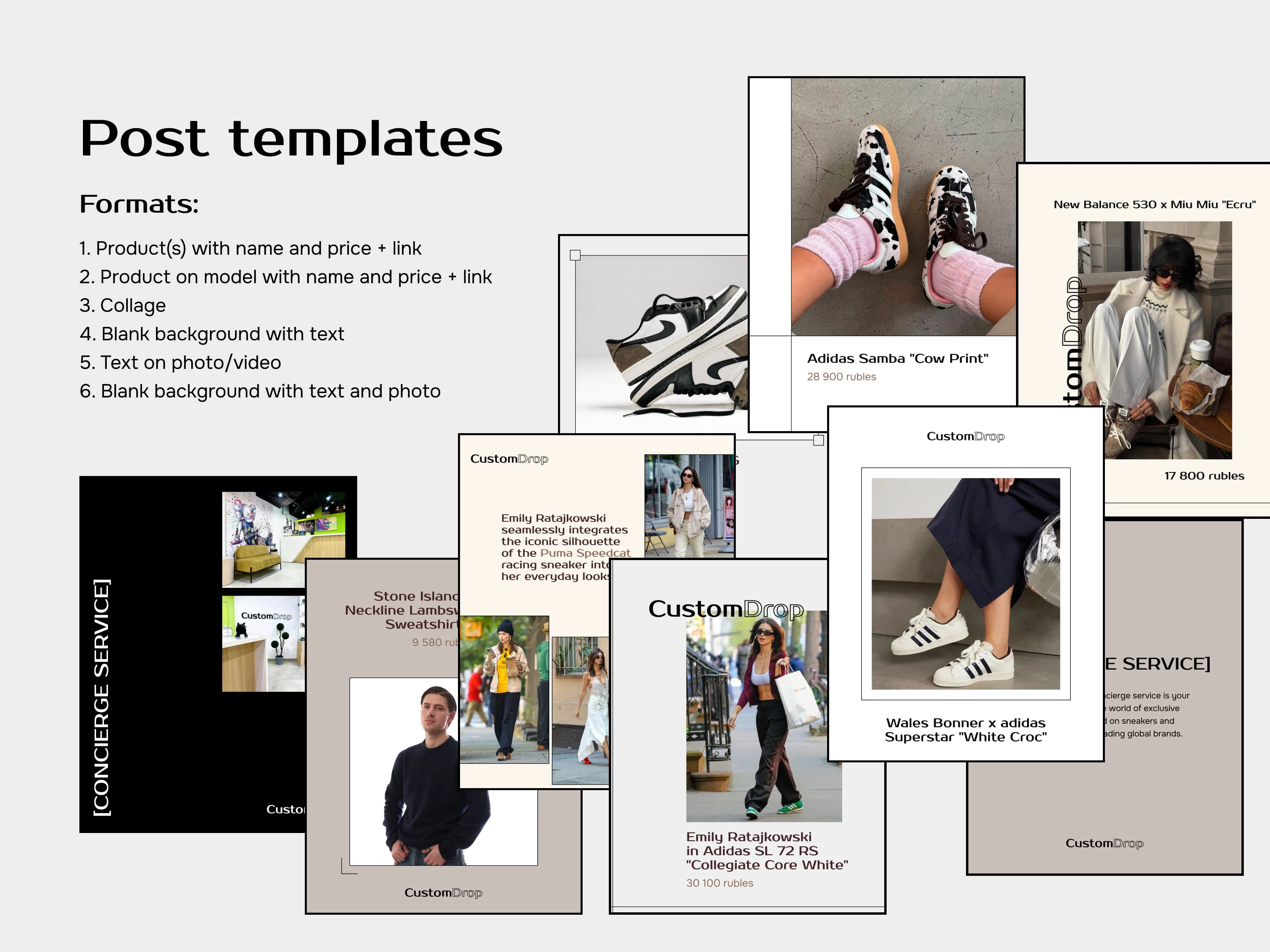 The client, CustomDrop, is a premium concierge service for exclusive sneakers and streetwear. The challenge was to develop a unique Social Media Branding concept (Posts/Stories) that embodies the brand philosophy: Exclusive, Reliable, and Expert. The design had to achieve instant recognition, specifically avoiding visual similarity with large market competitors.