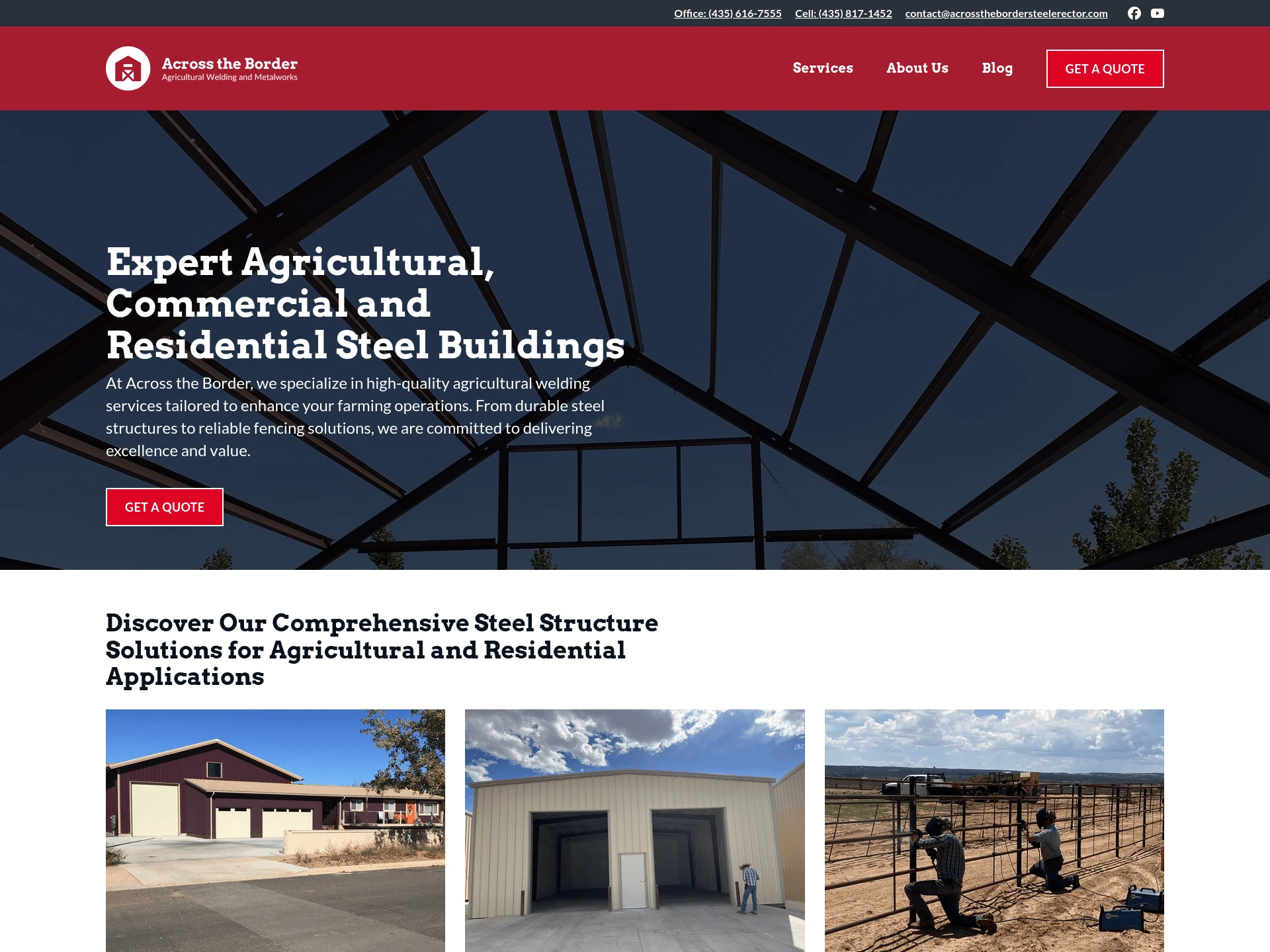 I designed and developed a custom WordPress website for Across the Border, a company that creates steel structures in the states of Utah and Arizona.