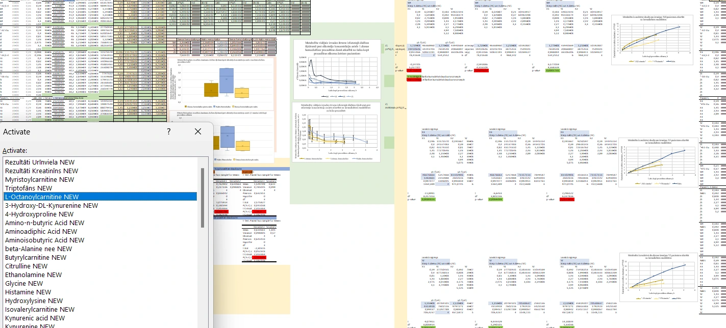 Master’s thesis project analyzing how metabolite concentrations in effluent dialysis fluid vary by hemodialysis modality. I collected and prepared the samples, processed mass spectrometry data using Skyline, and conducted in-depth analysis in Excel using normalization, cumulative values, linear regression, t-tests, and statistical significance testing. Results were visually presented for clarity and comparison.