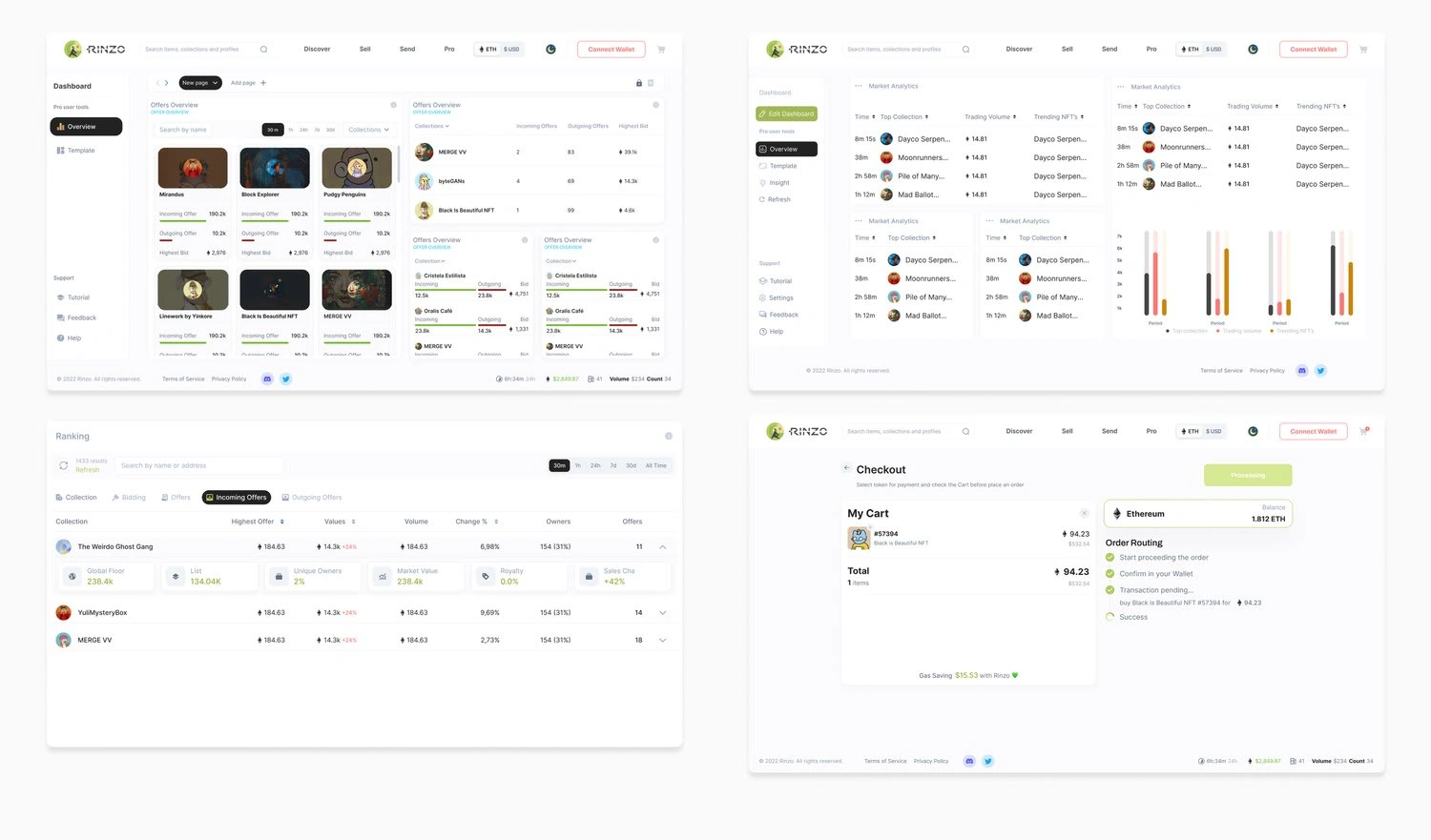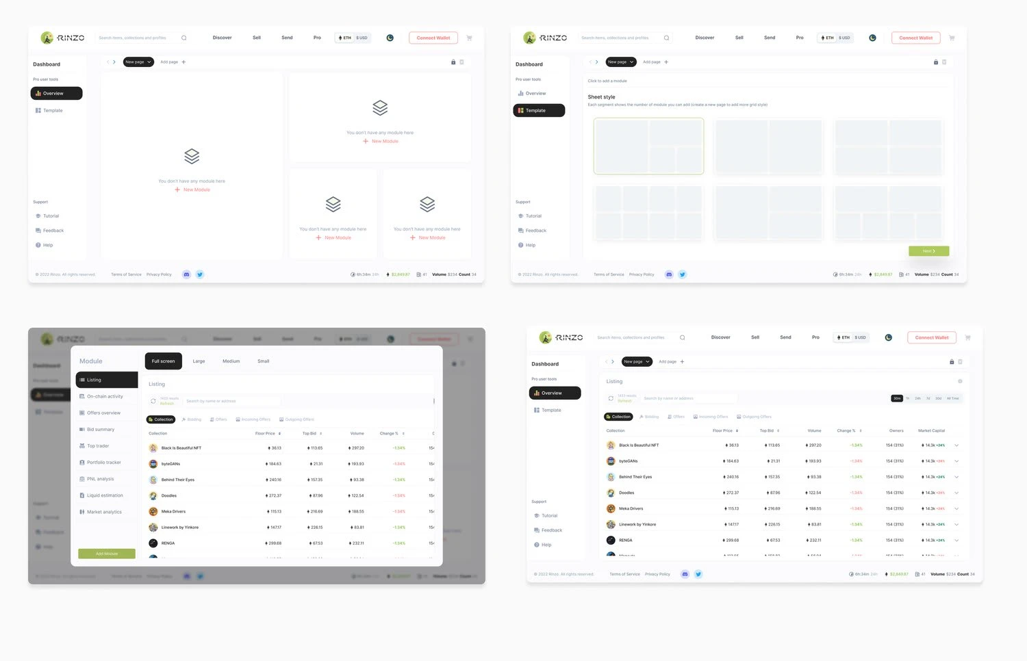 Designed a modular dashboard design for NFT aggregate Rinzo