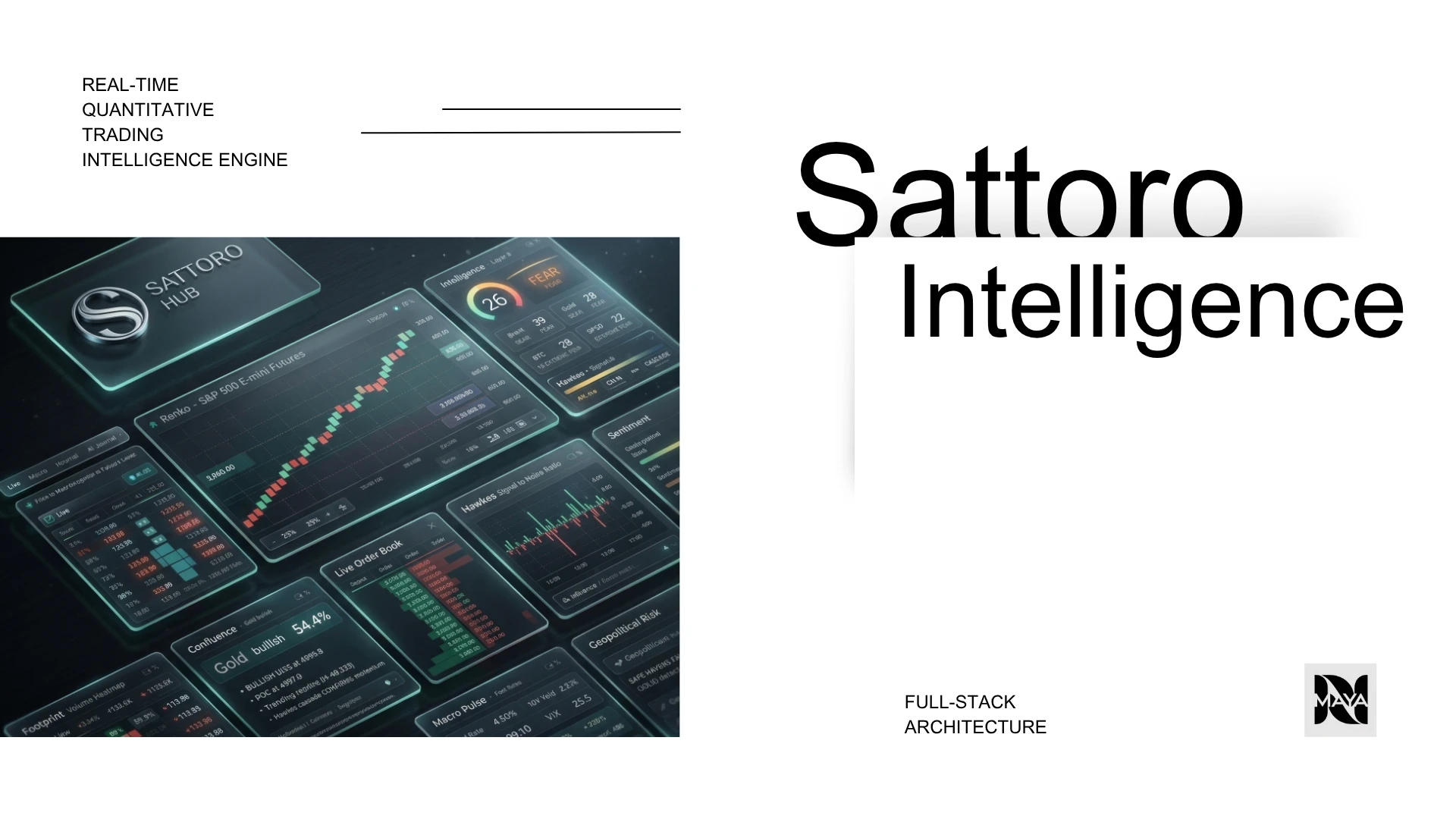 Sattoro Hub bridges the gap between institutional-grade analytics and independent traders. The platform processes live market feeds through 12 parallel analytical engines, applies cross-engine confluence scoring, and delivers interpreted market context - not signals - through a tiered SaaS model. An AI journal learns each trader's behavioral patterns and delivers personalized performance insights, while a screenshot analysis system powered by Claude API lets users get instant chart interpretation from natural conversation.