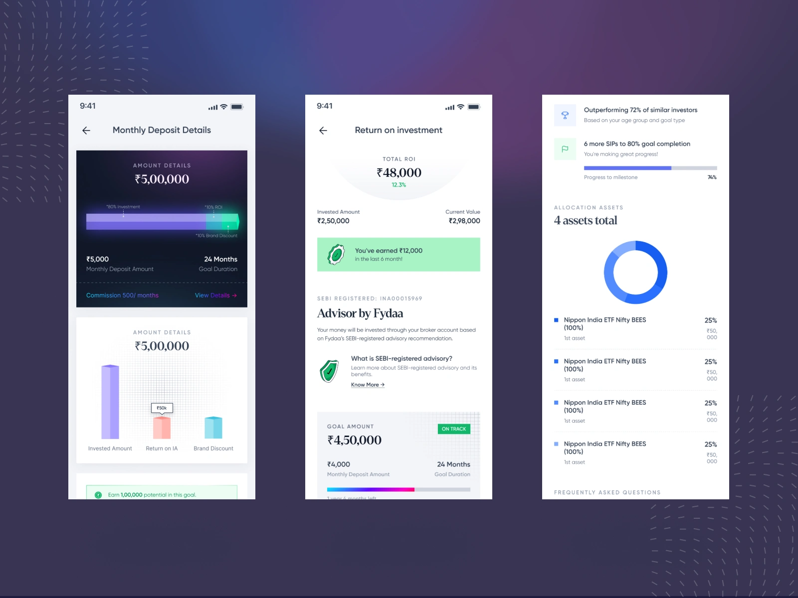 Here’s a peek into a fintech experience focused on personalized investment tracking and financial goal achievement.