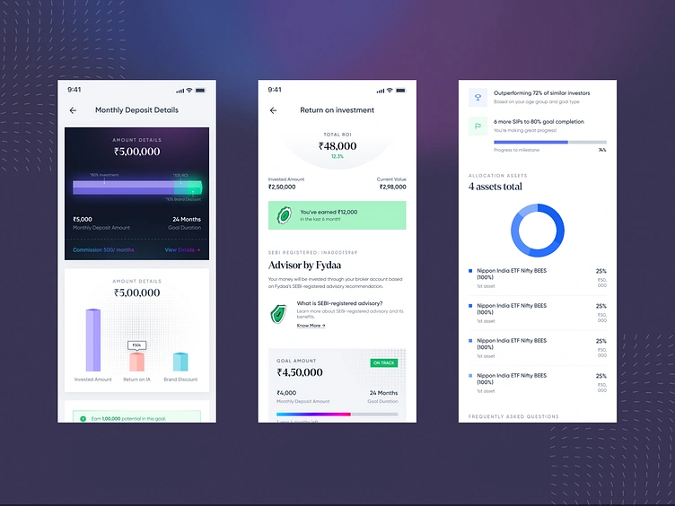 Here’s a peek into a fintech experience focused on personalized investment tracking and financial goal achievement. The flow showcases: