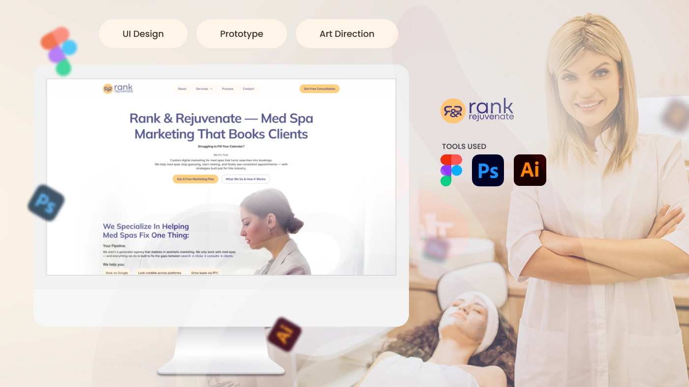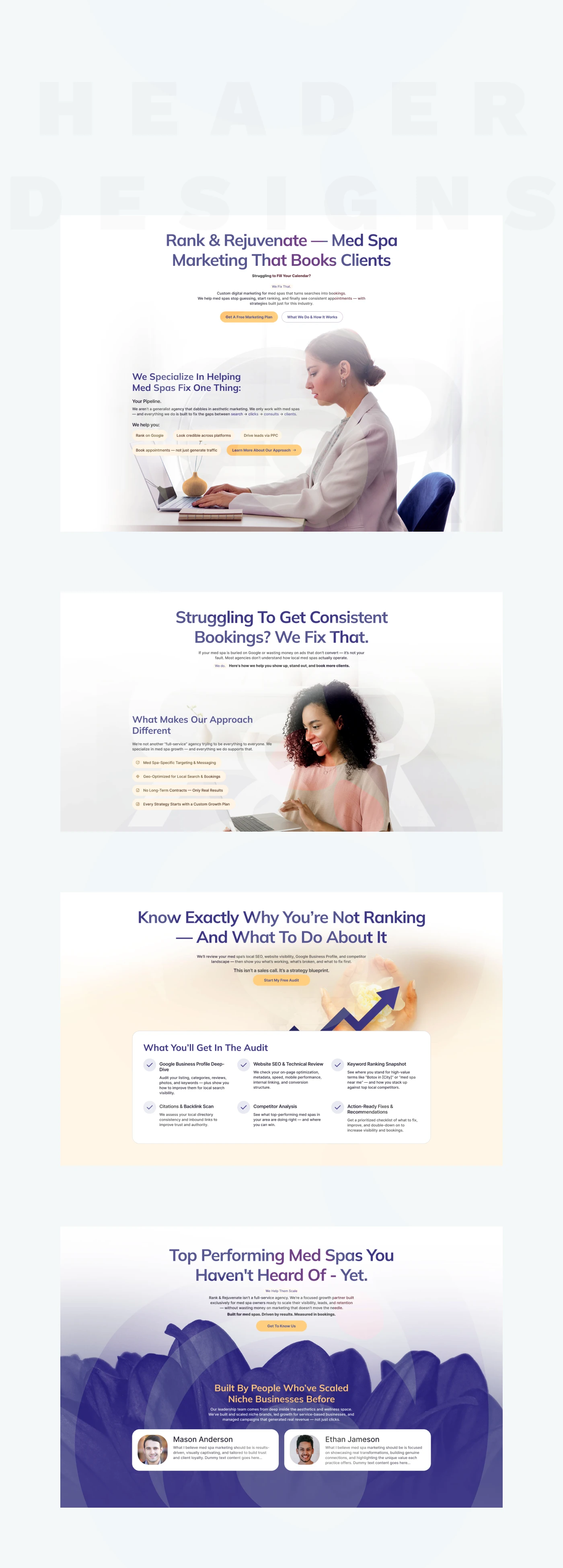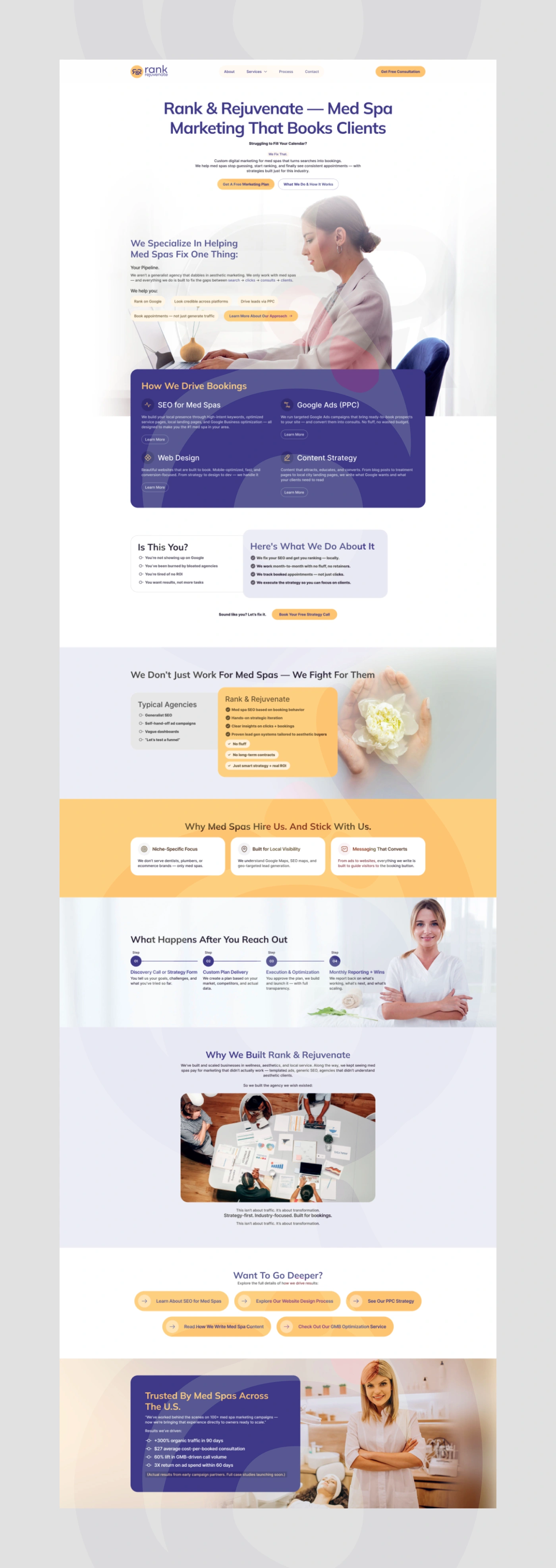 I created a fully custom UI/UX design for a MedSpa marketing agency, focusing on a modern and professional look that reflects wellness and trust. The design included responsive layouts, intuitive navigation, and engaging visuals tailored to highlight services and attract new clients. Built in Figma, the design was structured to support the agency’s marketing goals and deliver a seamless user experience across devices.