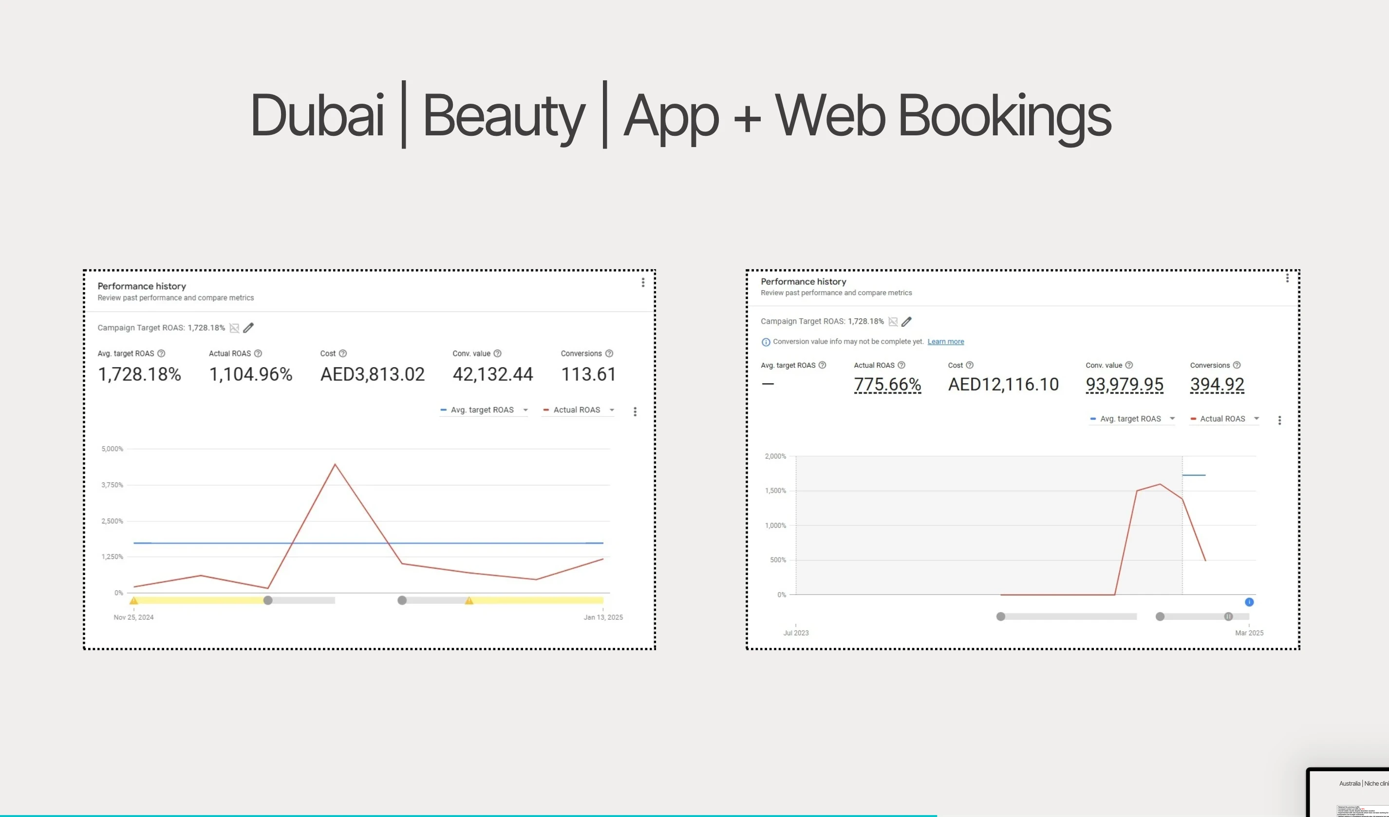 Built a structured Google + Meta Ads system for a Dubai beauty platform that delivered high ROAS by fixing service-level logic and booking flow