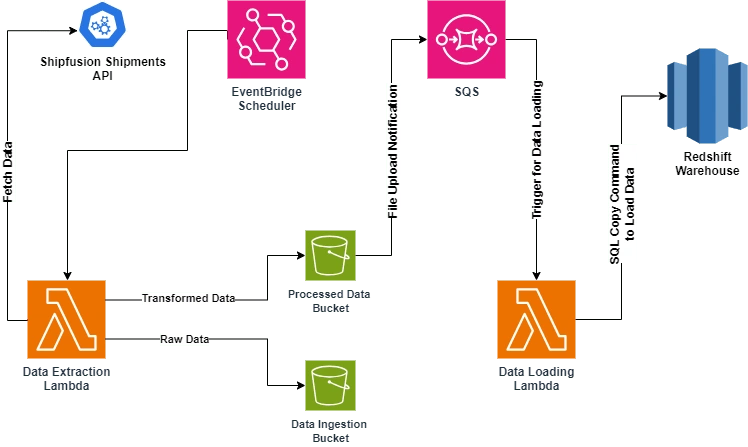 Event-Driven Data Pipeline for Shipments Data Extraction,Processing and Loading into Redshift.