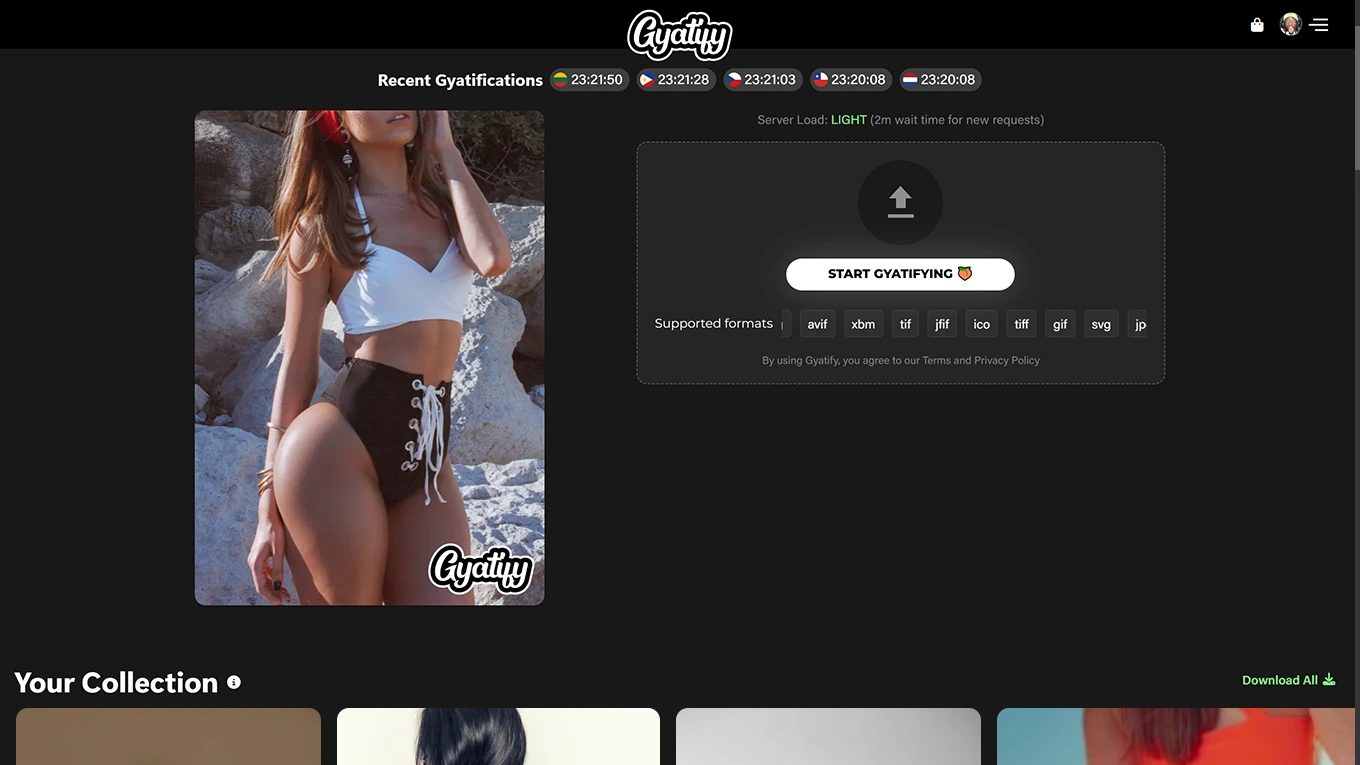 Gyatify is an AI-powered web app that makes your photos even better by realistically enlarging butts with AI, with support for multiple subjects in a single image. As a PWA, it can easily be installed on mobile devices with results stored locally for privacy. Download all your Gyatifications with one click or share them instantly across 50+ social media platforms. Completely free to use, supported by ads, original merchandise, and affiliate marketing.