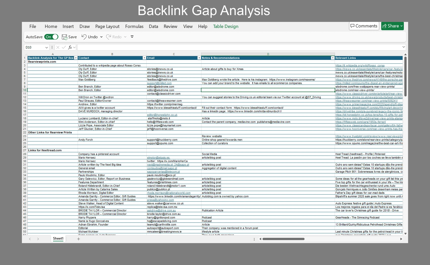 Researched the number of links and types of keywords based on rank authority their competitors had versus how many and the types of keywords the client had.