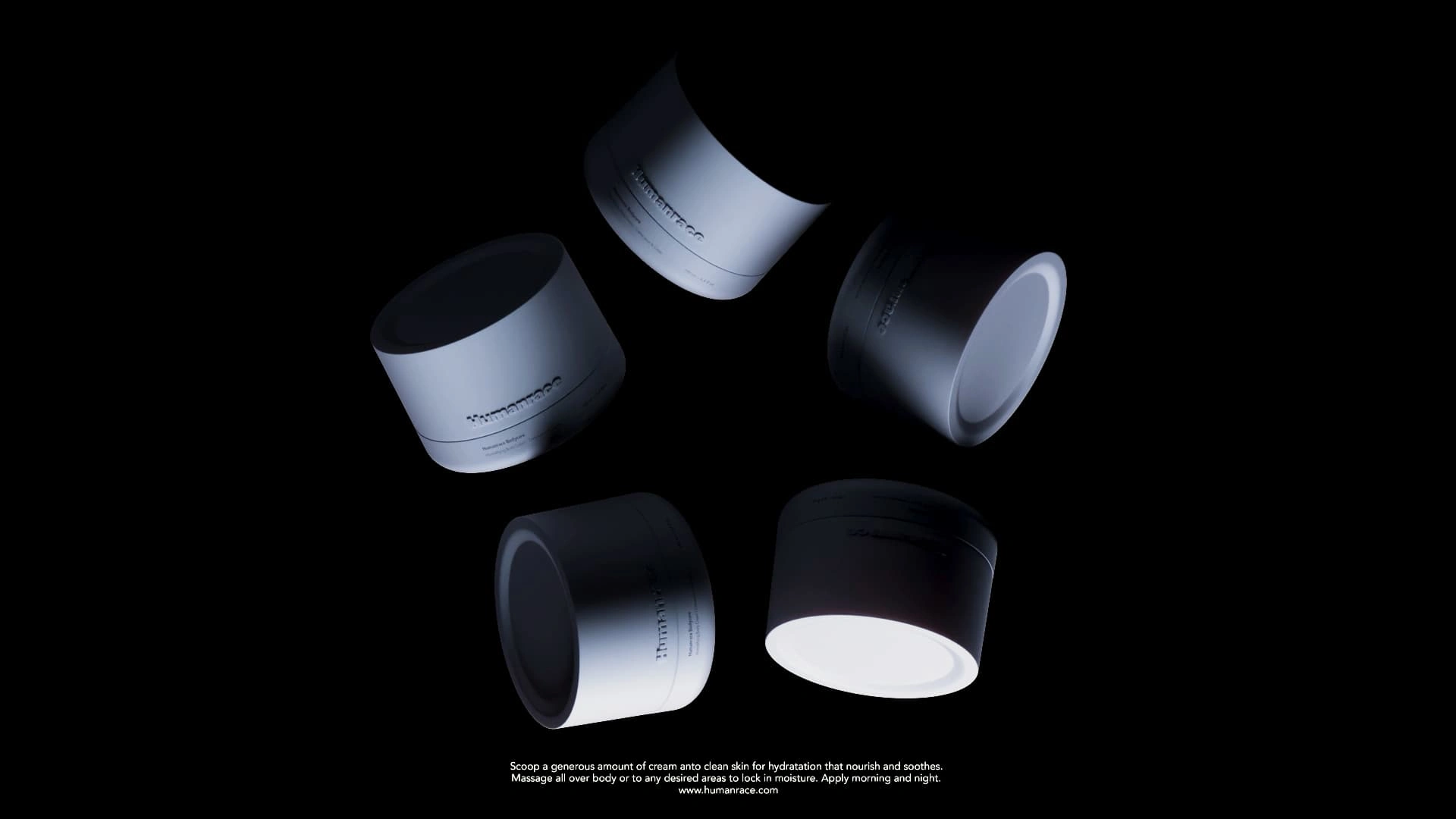 3D animation project for the brand Humanrace, featuring the 'Humanrace Bodycare Body Cream.