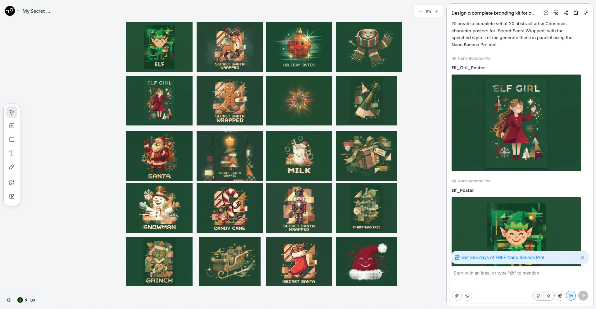 Using Lovart, I generated a wide range of holiday-themed assets, all designed to work together as a single system: