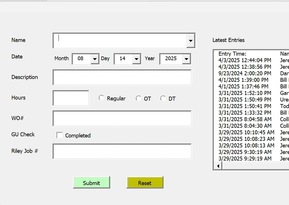 Data Management system built in Excel for a medium sized business. Data is entered, reports are automatically created from the database holding the data.