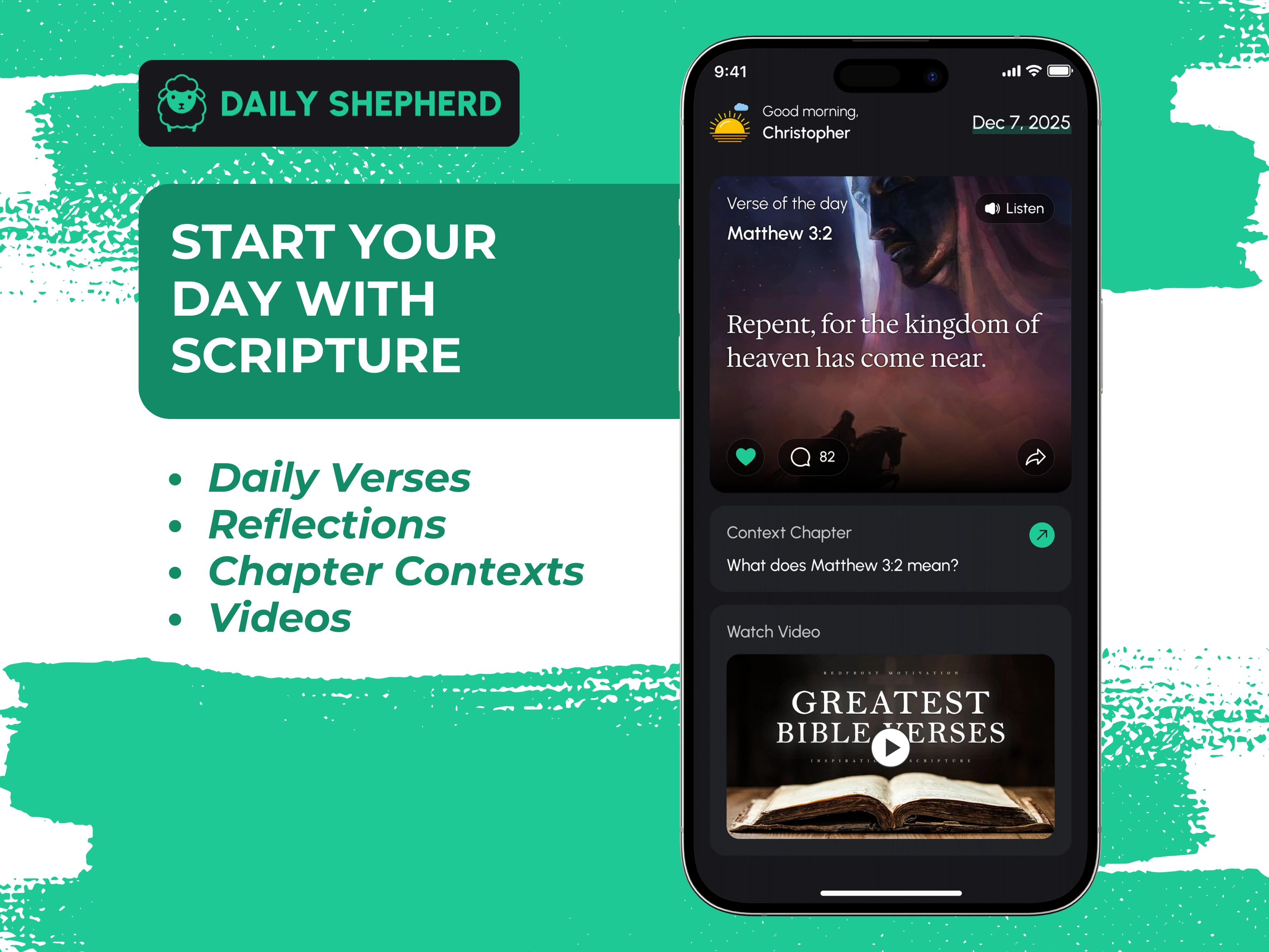 Daily Shepherd is a spiritual wellness app offering daily Bible verses, prayers and media with reminders, audio, and personalization to support faith and growth