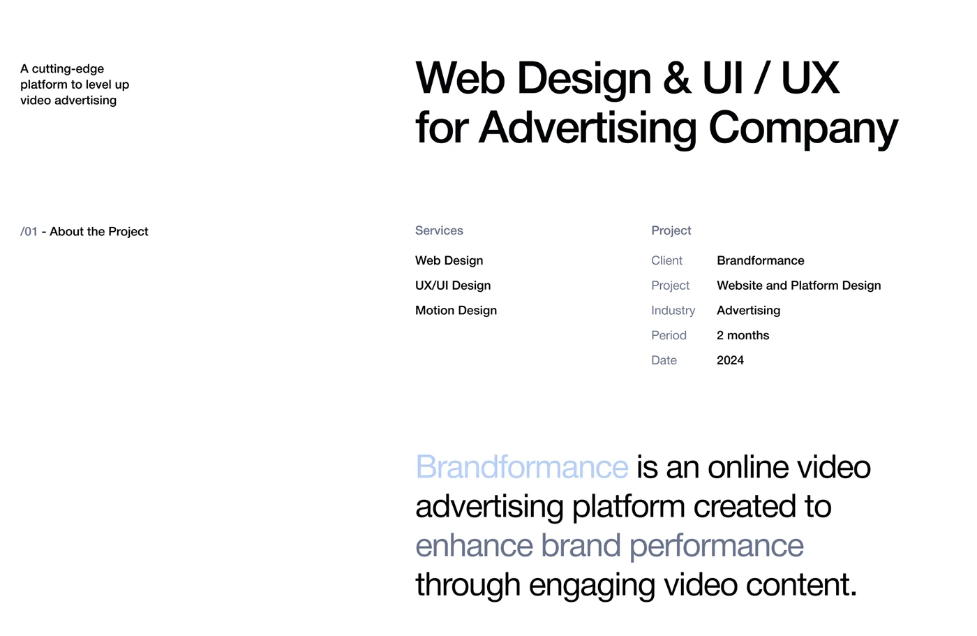 We designed an intuitive UI and UX of platform and developed an interactive website for lead conversion for Brandformance.