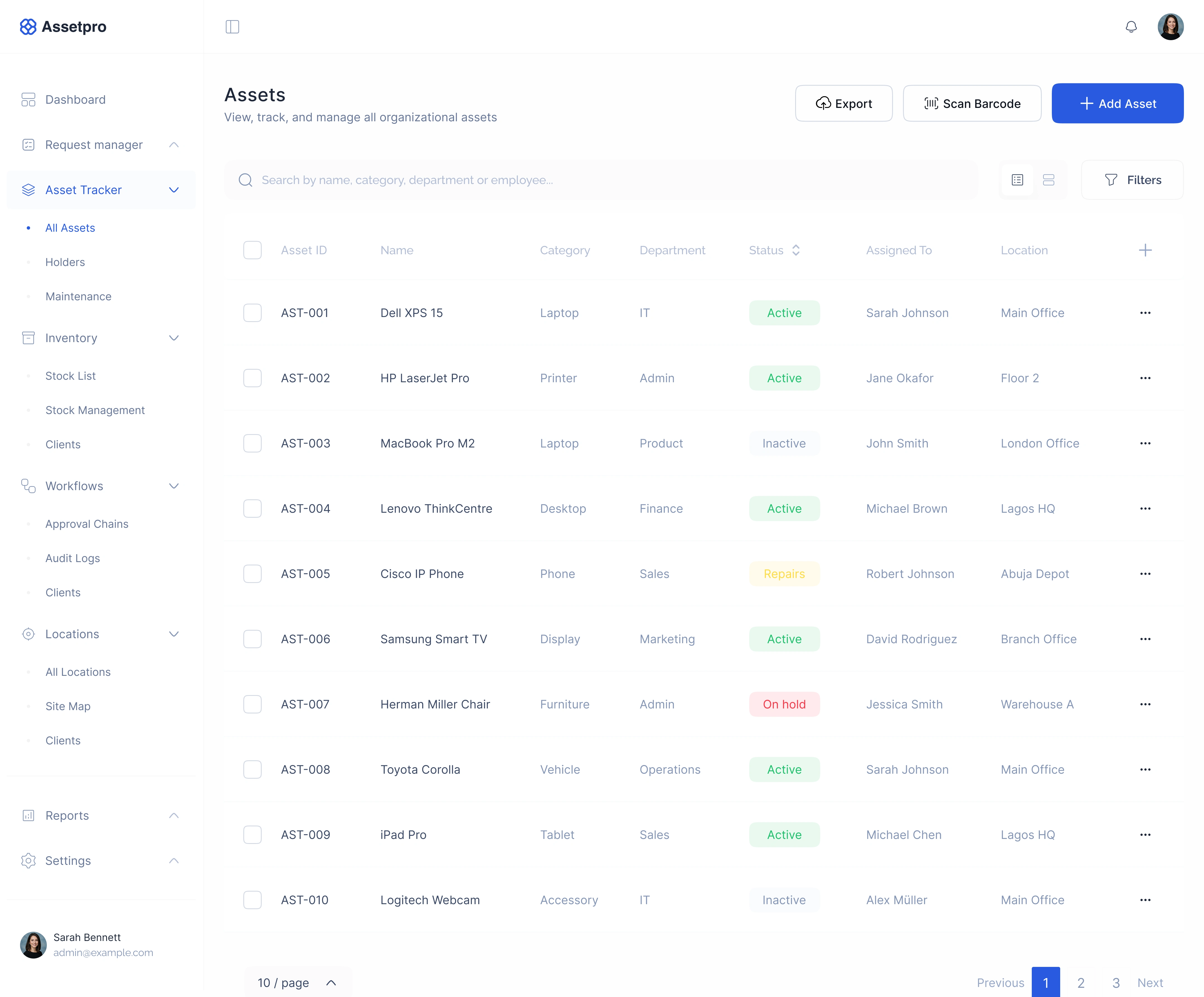 Designed Assetpr, a platform that helps companies manage assets efficiently. My focus was on creating an experience that made organization simple and intuitive.
