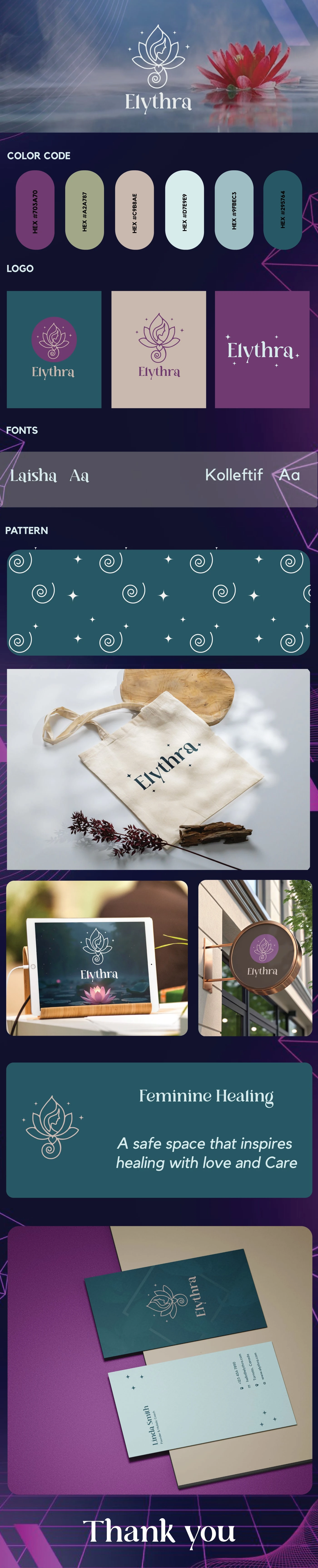 Elythra’s brand identity visually communicates a haven of safety and love. It embodies emotional connection, soulful healing, and the quiet confidence of women reclaiming their wholeness.