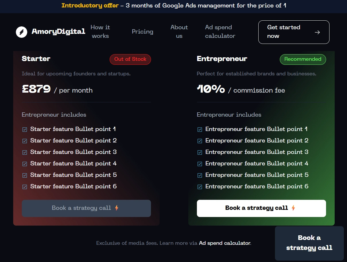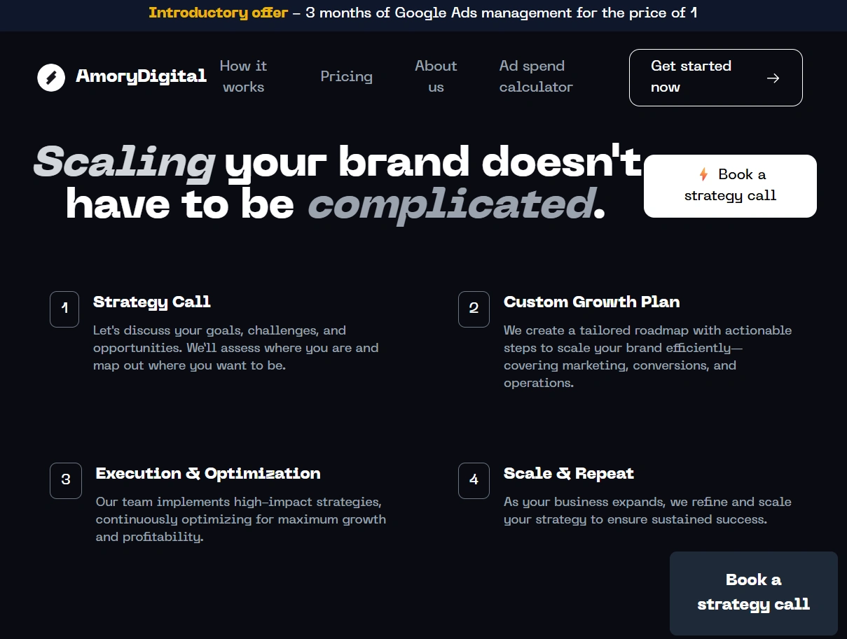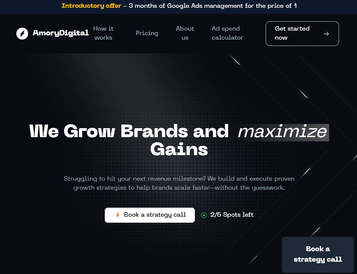 Amory Digital is a growth-focused agency that helps brands accelerate revenue and scale smartly. The website is designed to reflect their bold, results-driven identity with a sleek, conversion-focused layout. Messaging, typography, and visuals are all crafted to convey clarity, momentum, and measurable impact.