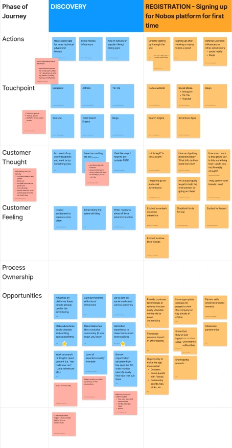 Snippet of the user journey map.