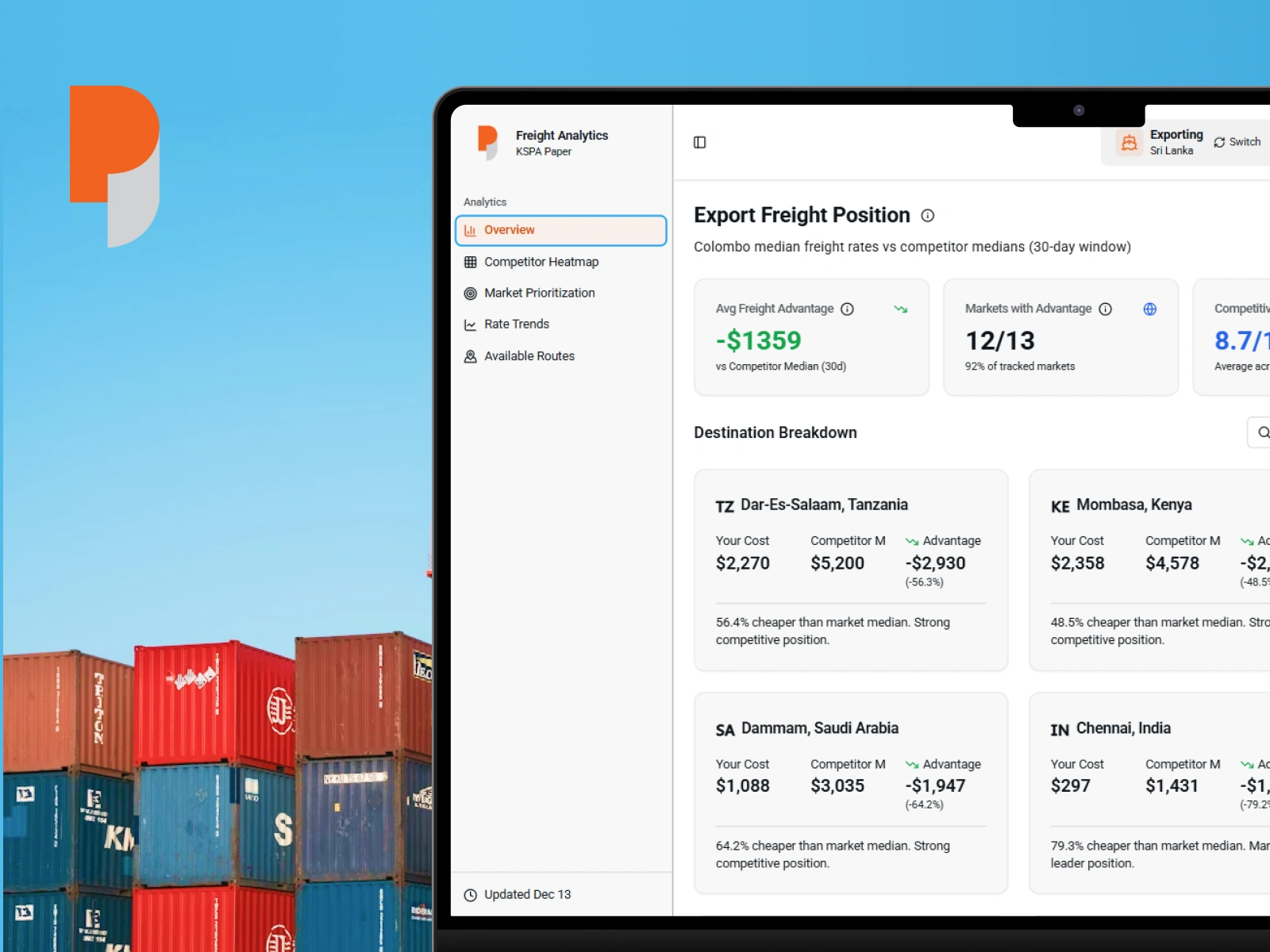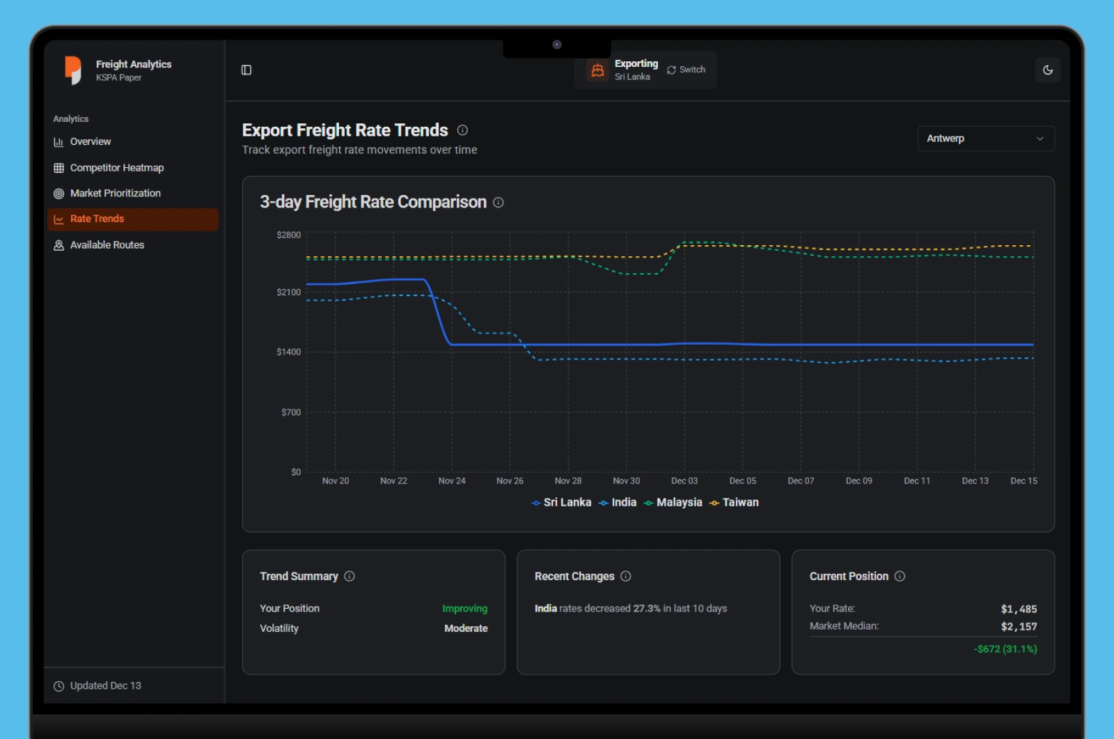 The KSPA Paper Freight Analytics Dashboard represents a strategic transformation of how a Sri Lankan paper exporter approaches global market competitiveness.
