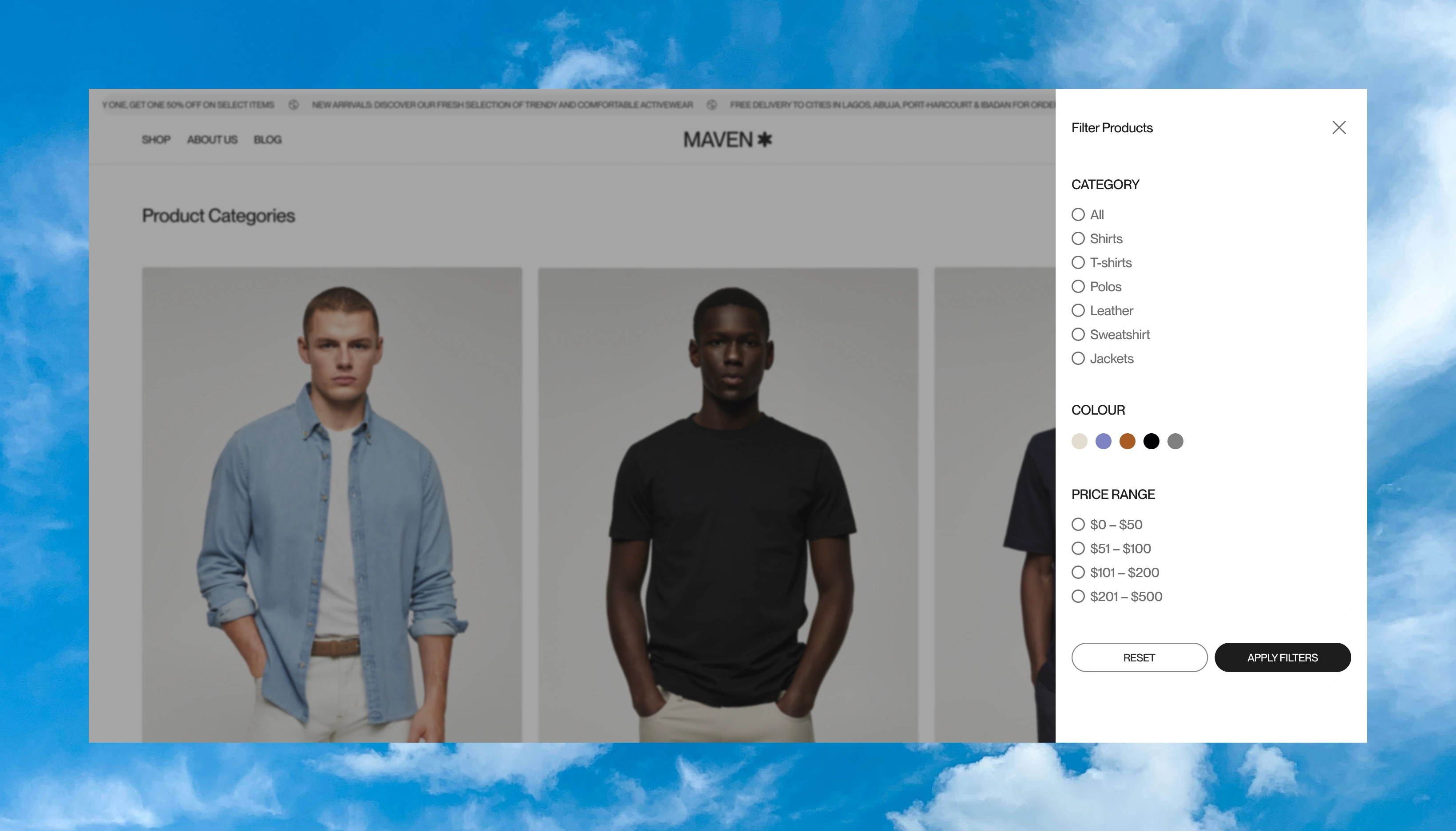 Maven, a contemporary menswear brand, approached me to design a modern, conversion-driven landing page for their online store.