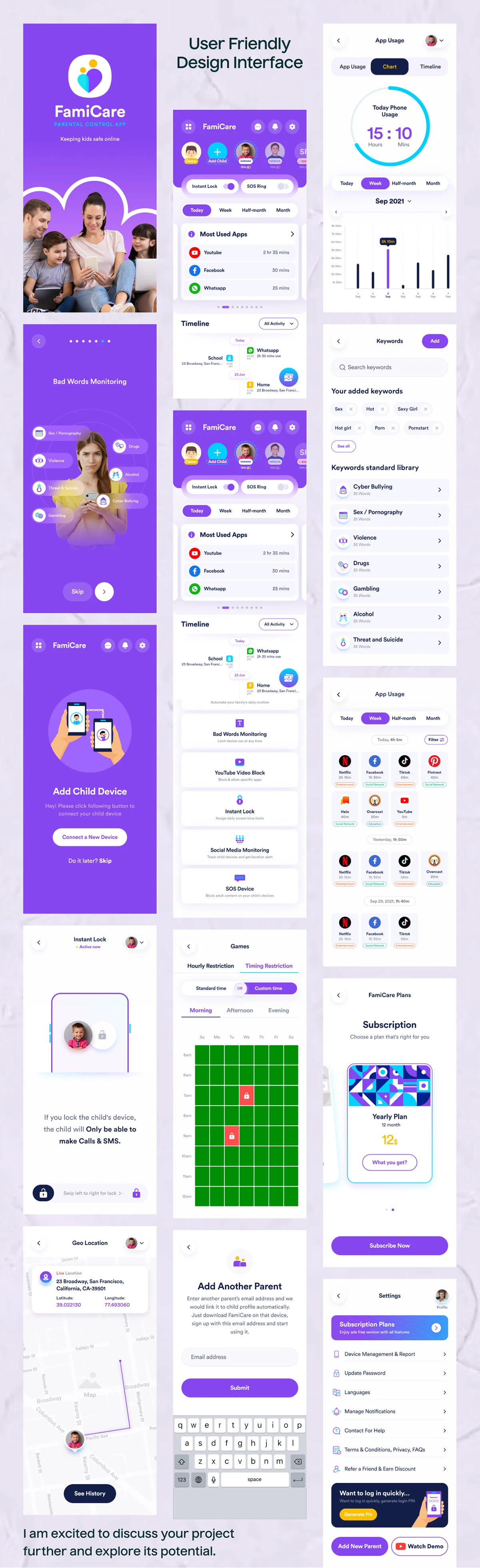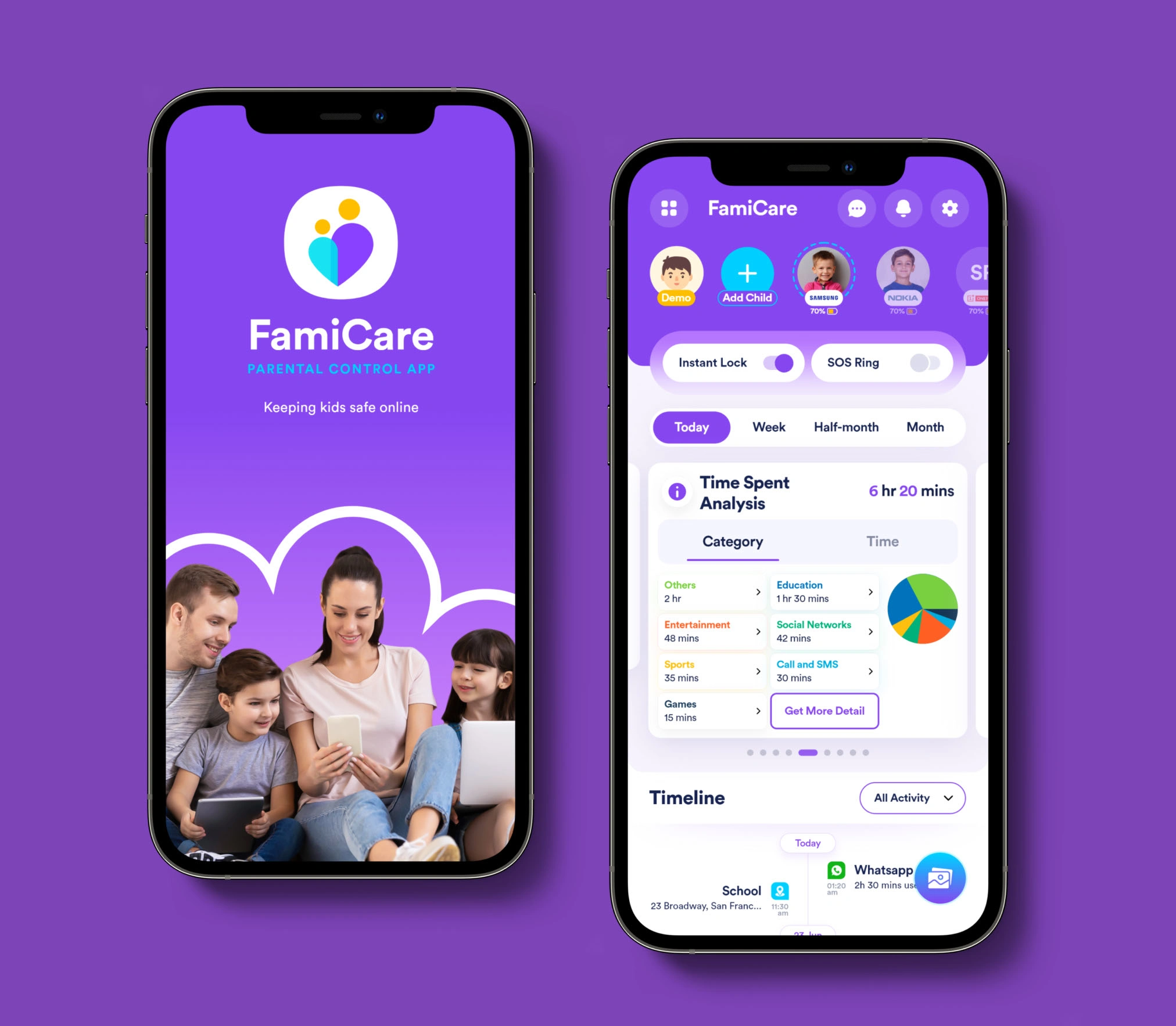 The Famicare app's layout provides a practical way to control kids' screen time.