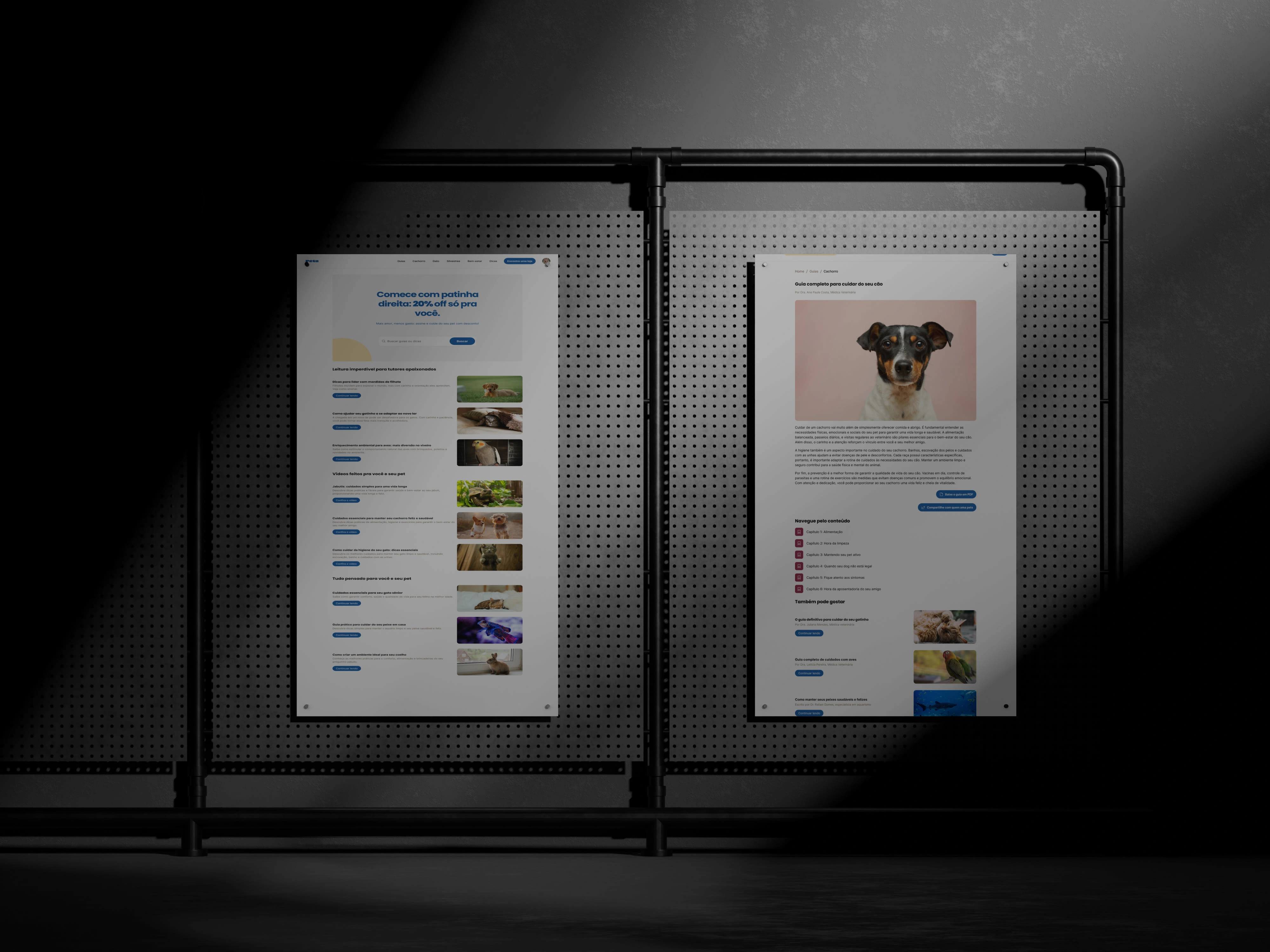 The goal was to create a screen that feels both informative and playful, in line with the brand’s identity. I focused on organizing content in a visually appealing layout, using clean typography, icons, and pet-friendly colors to enhance readability and engagement. The design allows users to easily browse articles, tips, and updates related to pet care, training, nutrition, and more.