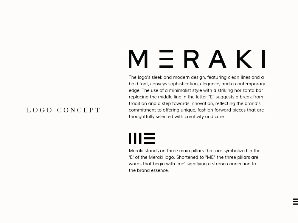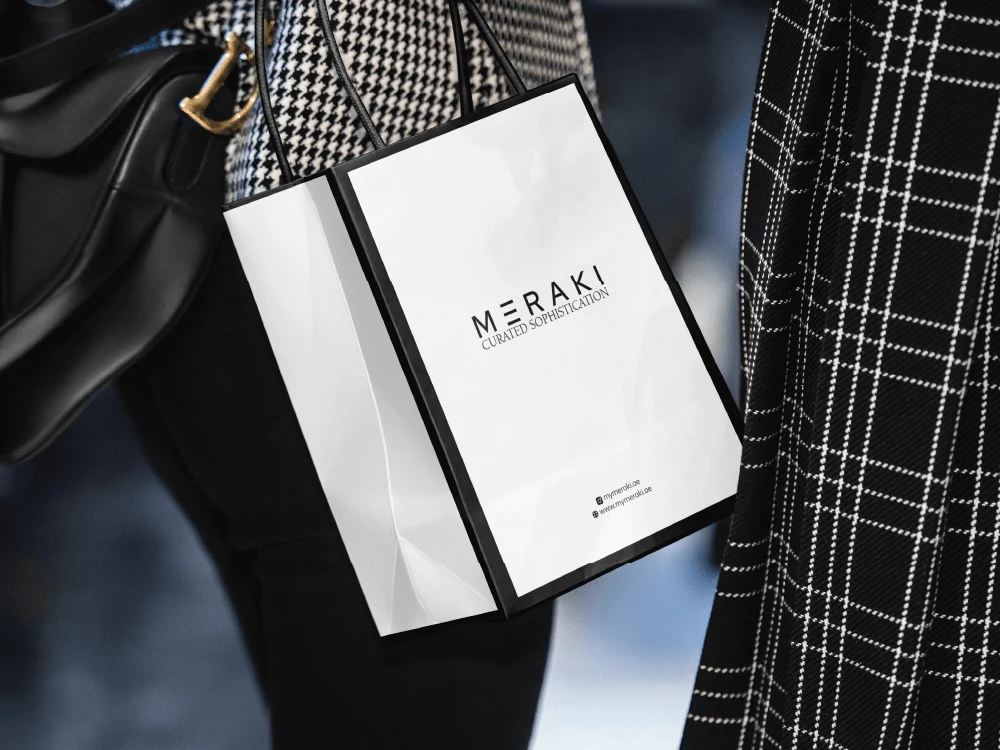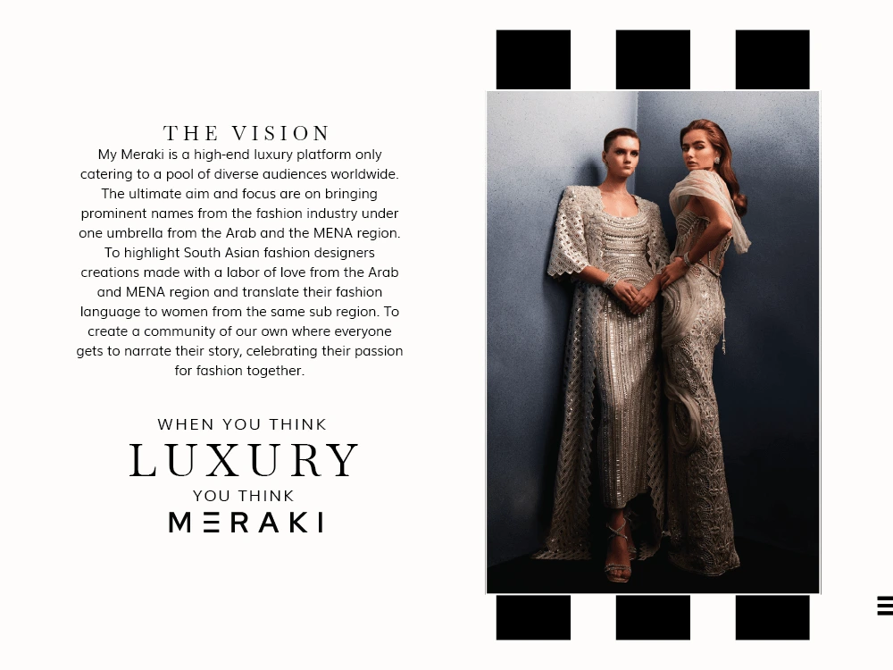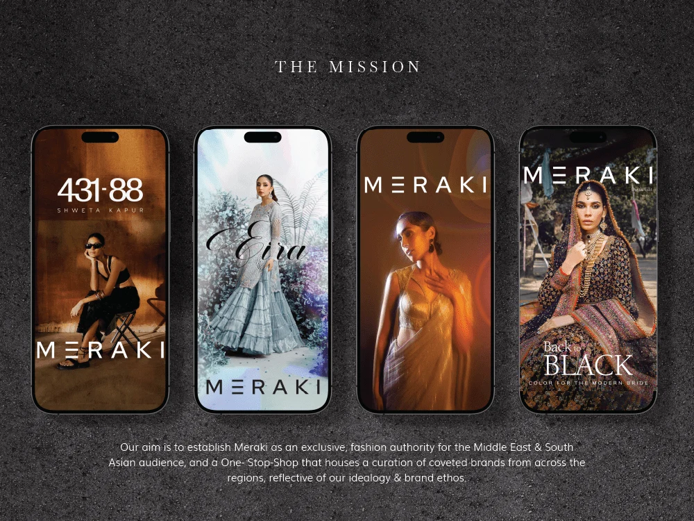 Designed a sophisticated visual identity for Meraki, showcasing Arab & MENA's top fashion. Delivering high-end graphics, logos, and marketing materials.