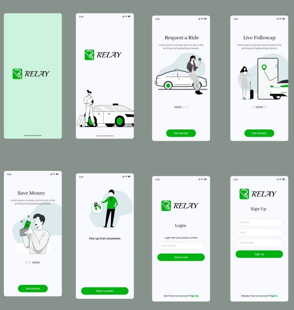 Car hailing mobile app Sample design