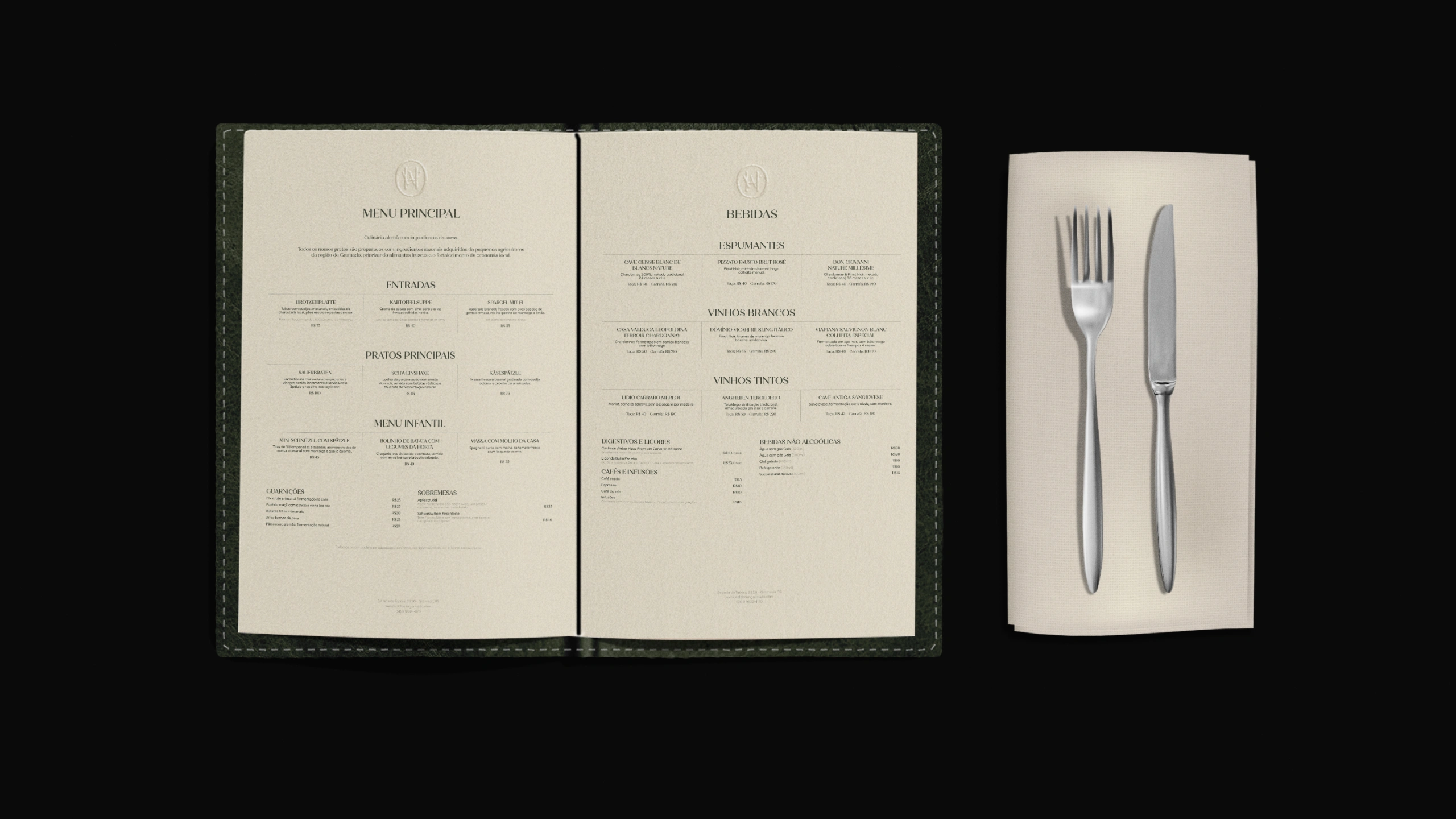 No restaurante principal, a escolha por uma culinária alemã de base tradicional — reinterpretada com ingredientes frescos da serra gaúcha — reforça o vínculo entre o território e o tempo.