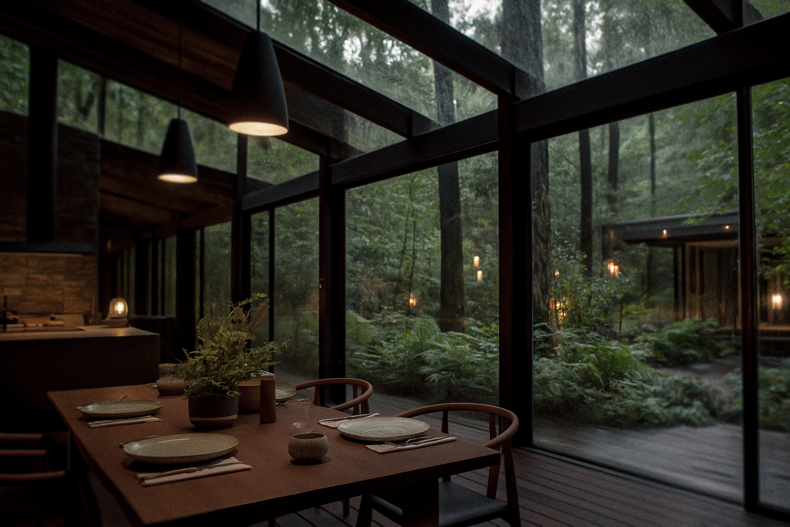 A proposta não está em multiplicar estímulos, mas em criar momentos com peso real. Os jantares privativos nos Refúgios representam essa lógica de forma exemplar: realizados em quiosques isolados entre a vegetação, com capacidade para até oito pessoas, os encontros são conduzidos por um chef que executa um menu exclusivo em três tempos. Nenhum prato é revelado antes da hora. Nenhuma pressa é imposta. A cozinha atua como ritual de atenção e arte.