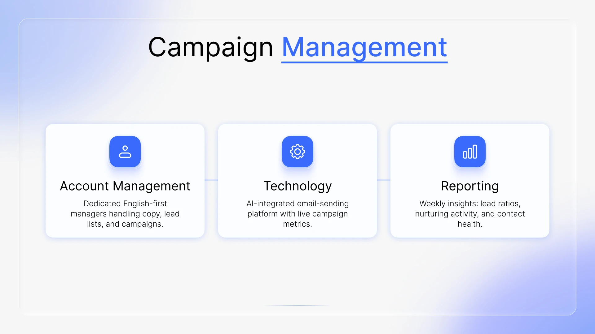 I redesigned the full deck around a clear visual hierarchy: lead with the value prop, back it with social proof (G2 badges, 500+ clients), and make every slide scannable in under 5 seconds. The blue-gradient system was pulled directly from their brand, keeping everything cohesive across hero, funnel, stats, and comparison slides.