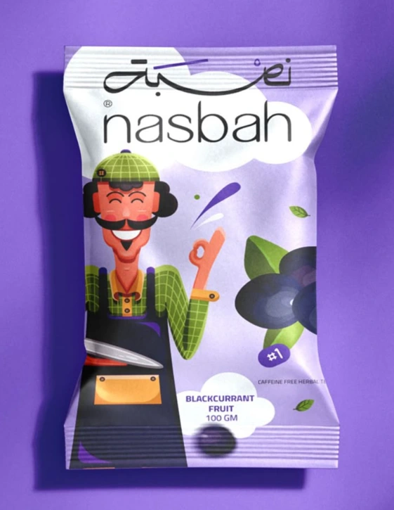 Nasbah’s herbal tea packaging is designed to highlight the product's natural and caffeine-free ingredients. The focus was on a clean and playful design, featuring a vintage-inspired character and bold colors to make it more approachable for health-conscious consumers.