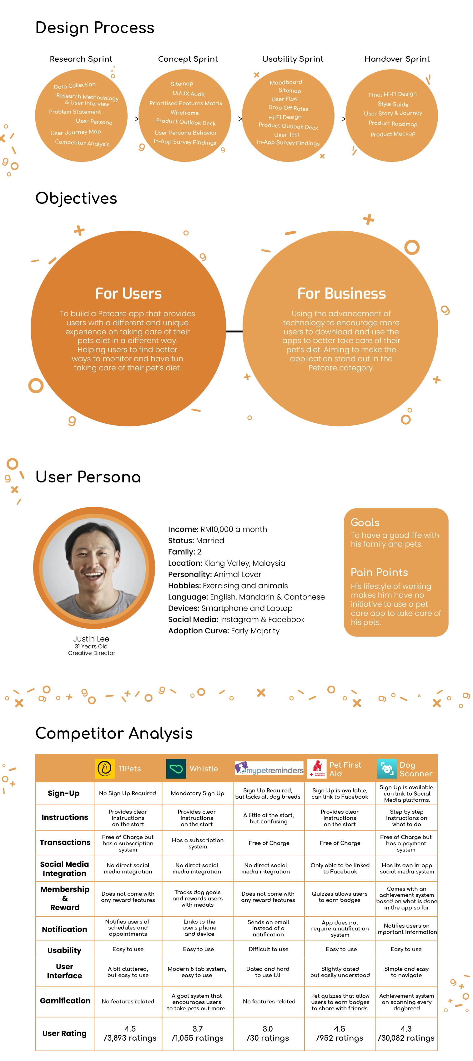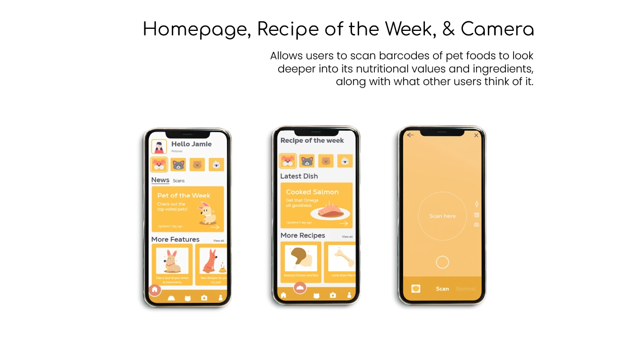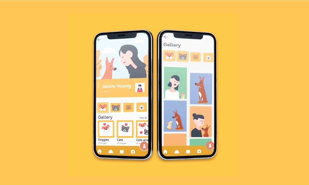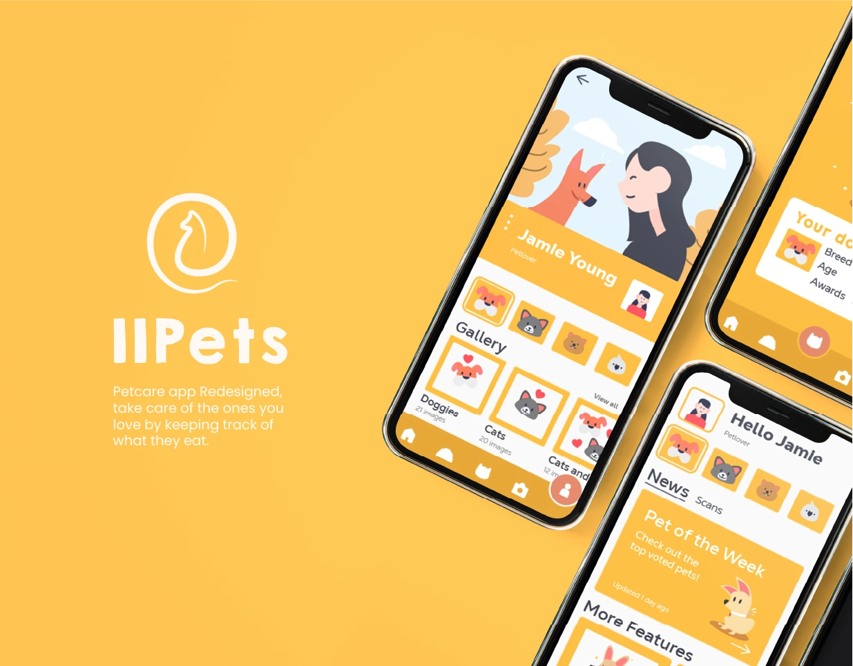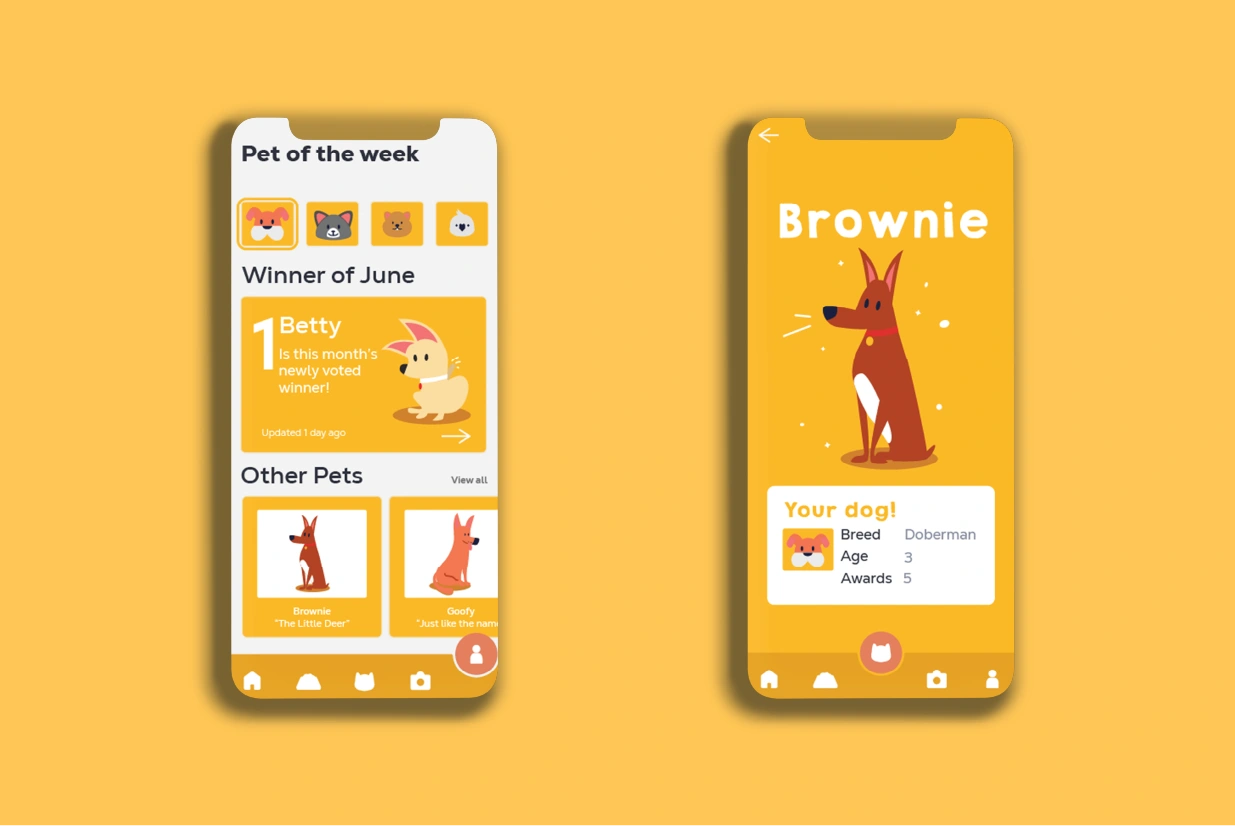 A rebranding proposal for a pet management app. The focus was to modernize the UI, create a friendly visual tone, and maintain usability across screen sizes.