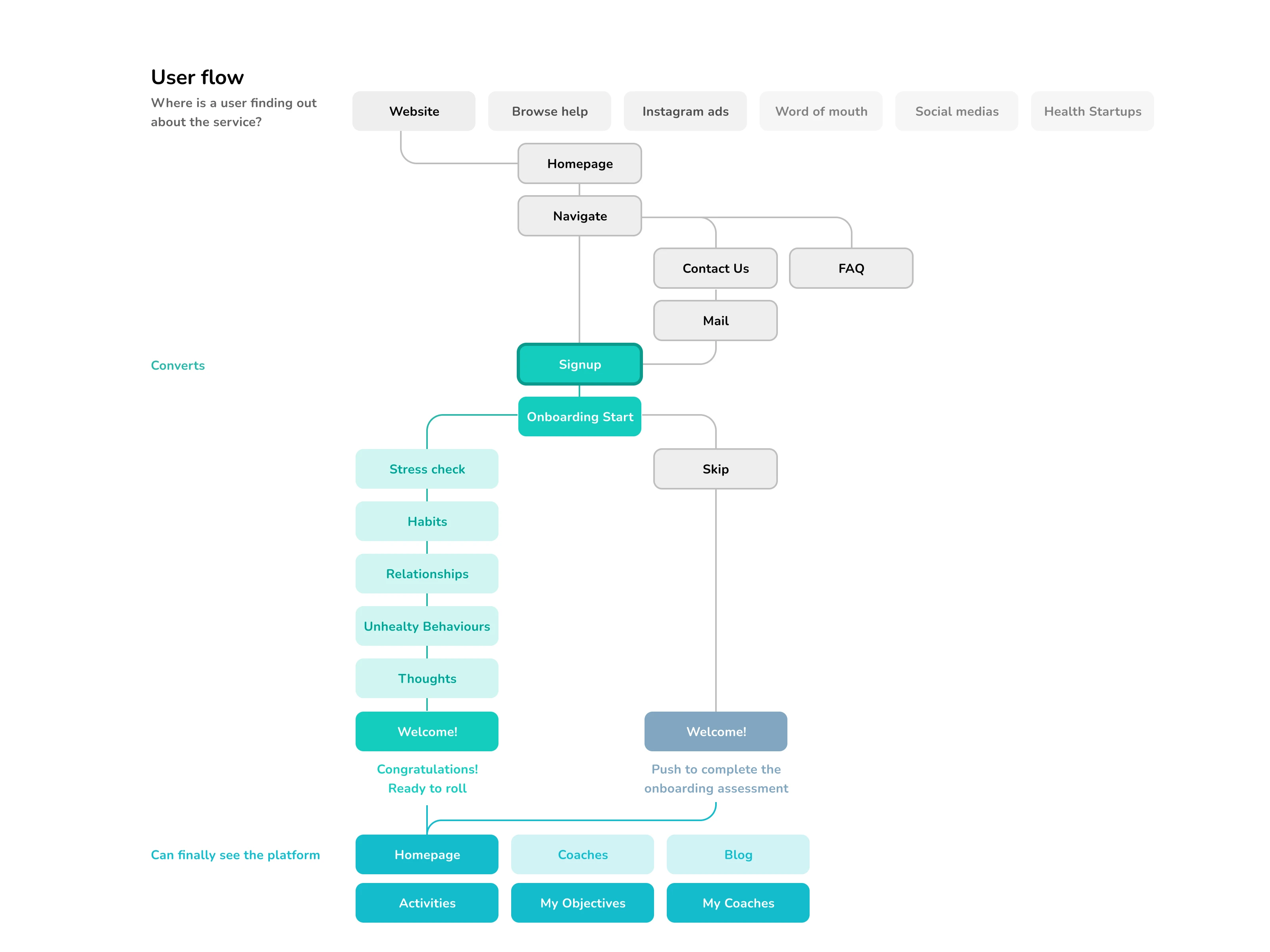 The ideas coming out of the research was to base the product on different activities the user was given, the objectives those activities were getting to, and the personal coach that was assigned to them.