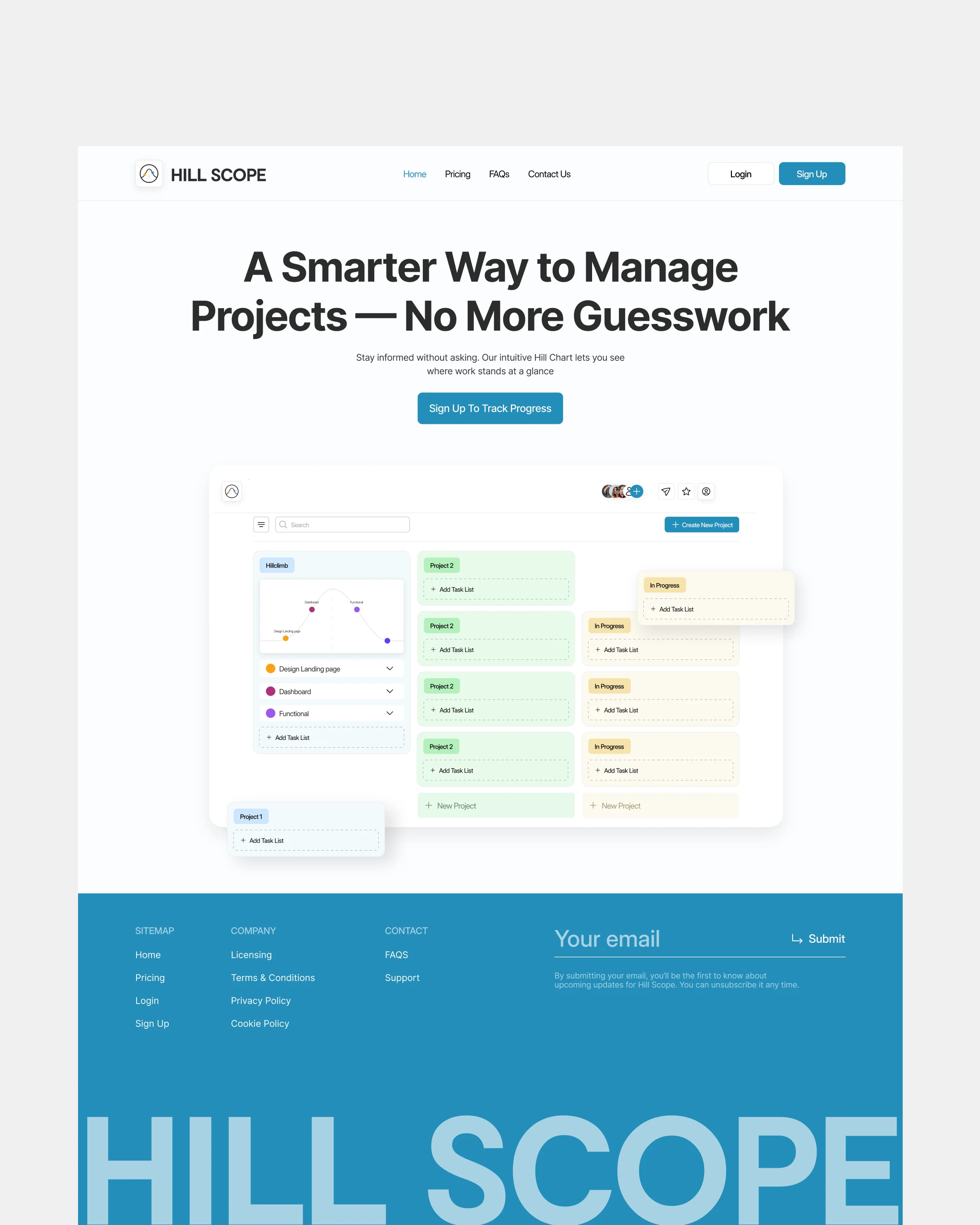 Designed a clean and modern landing page for Hill Scope focused on clarity, flow, and a professional look to strengthen brand presence online.