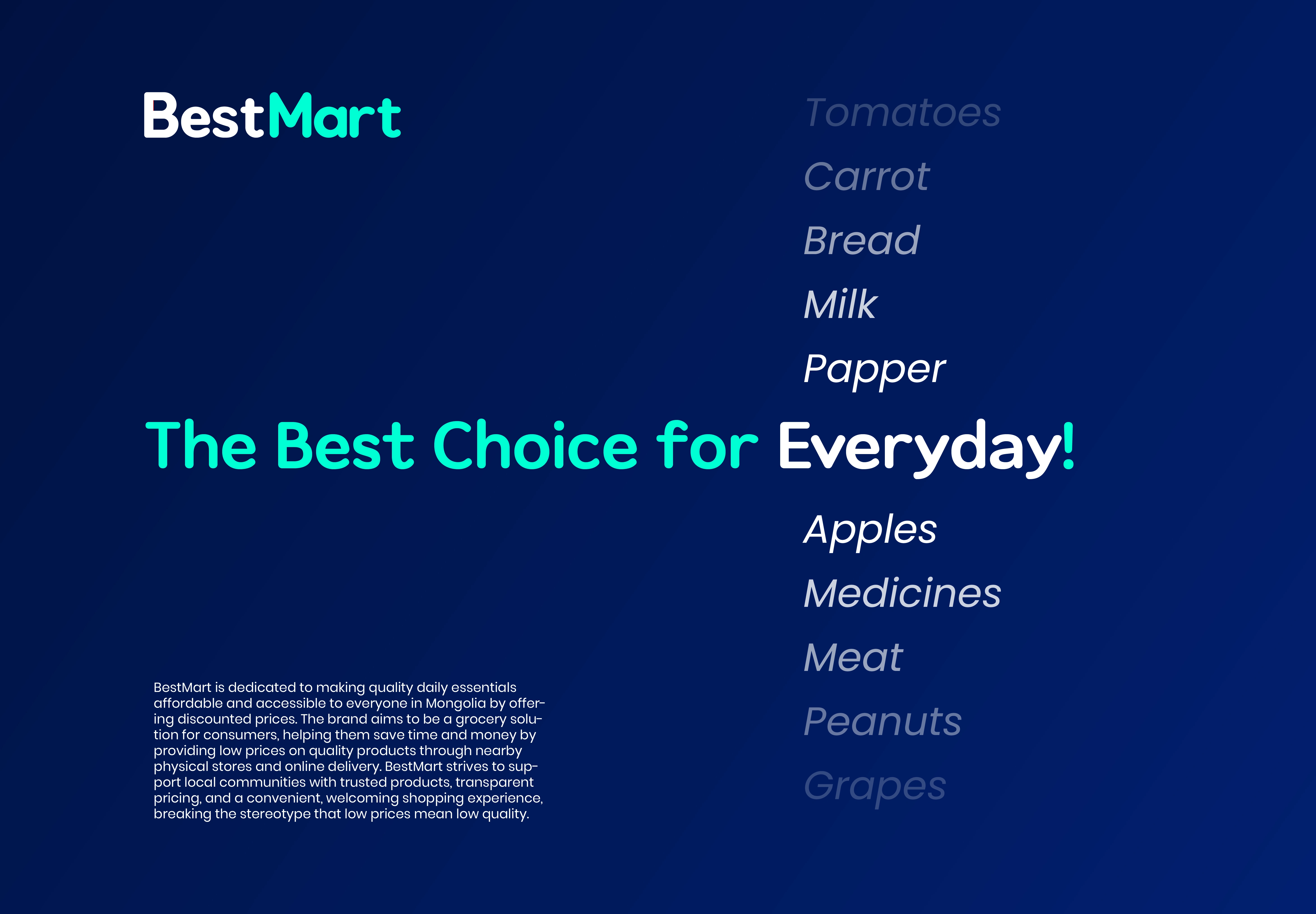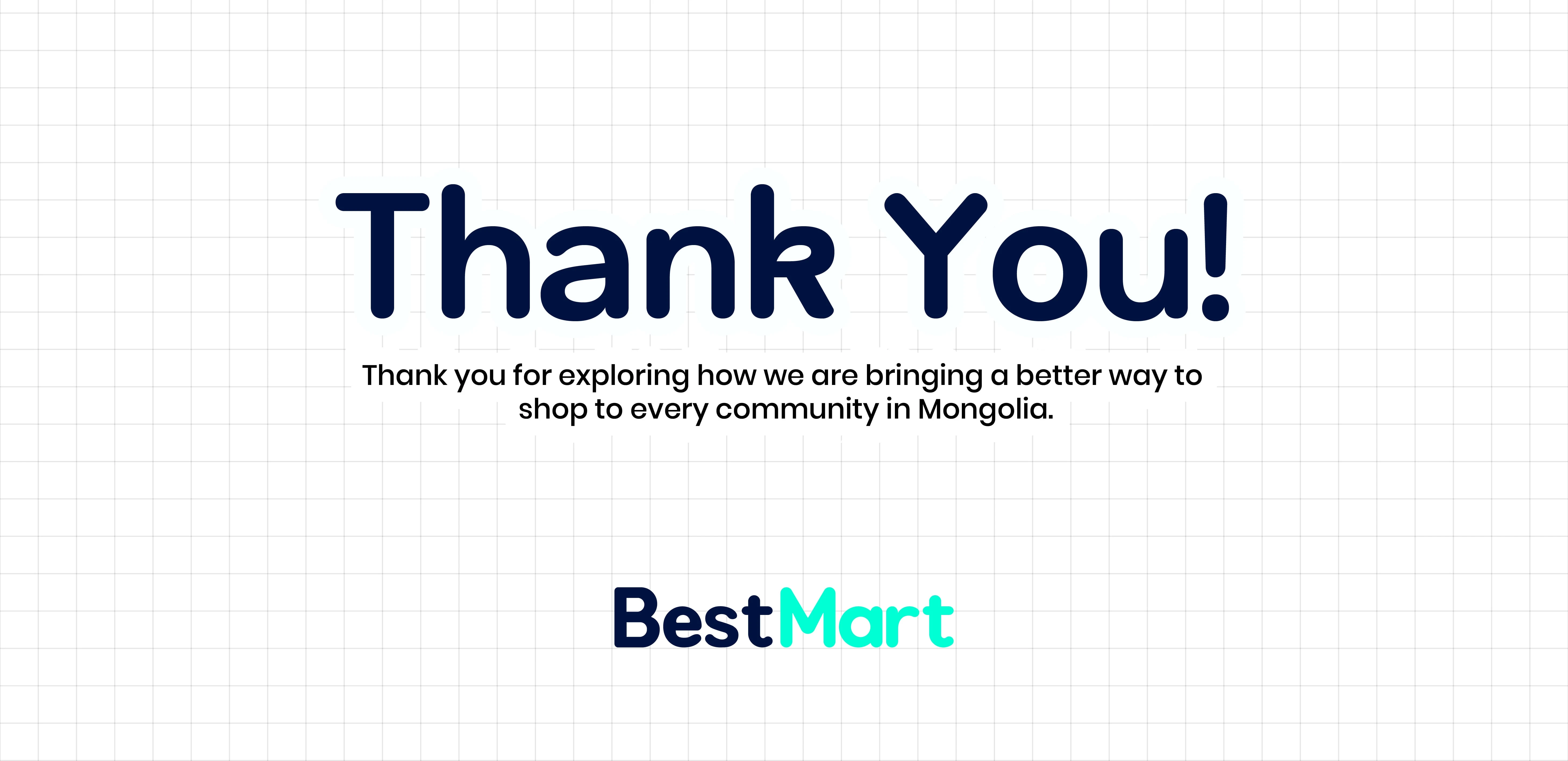 BestMart is on a mission to bring quality, affordable daily essentials to communities across Mongolia. By blending the convenience of local physical stores with a seamless online delivery service, we provide a reliable solution for your everyday needs. Our brand is built on the belief that everyone deserves access to fresh, trustworthy products without having to compromise on price, making us the community's go-to for simple, smart shopping.