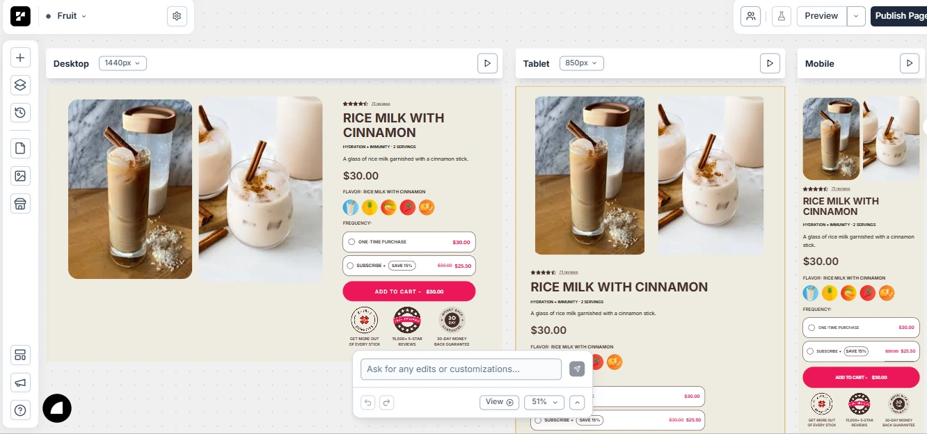 Built with Replo page builder, this responsive website works seamlessly on all devices, offering an optimal user experience across screens.