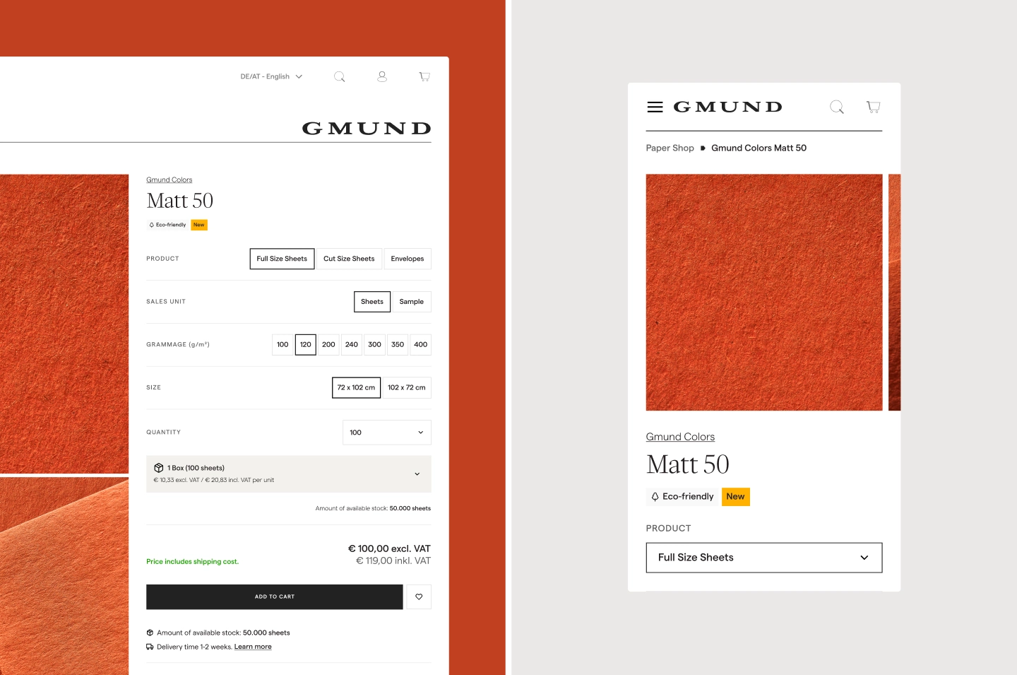 Gmund Paper is a Bavarian paper manufacturer known for premium, tactile papers used by designers, brands, and printers worldwide. The challenge was to translate this sensory, heritage-rich brand into a modern eCommerce experience that stays true to the craft while making it easy for both B2B and B2C customers to browse, compare, and buy online.
