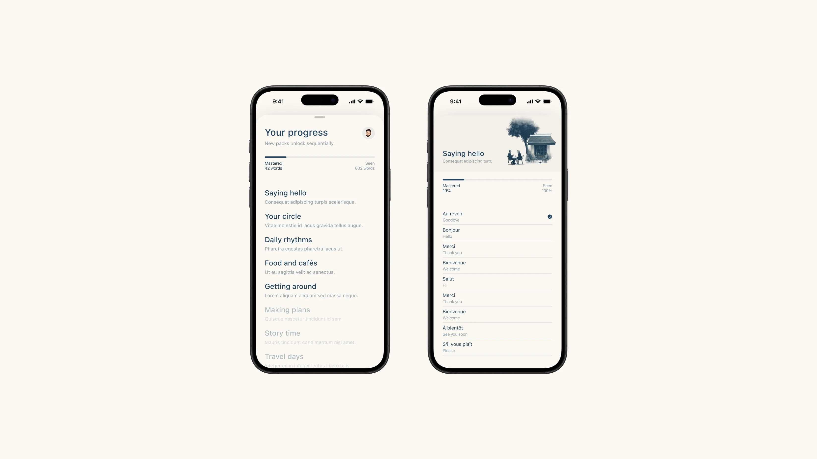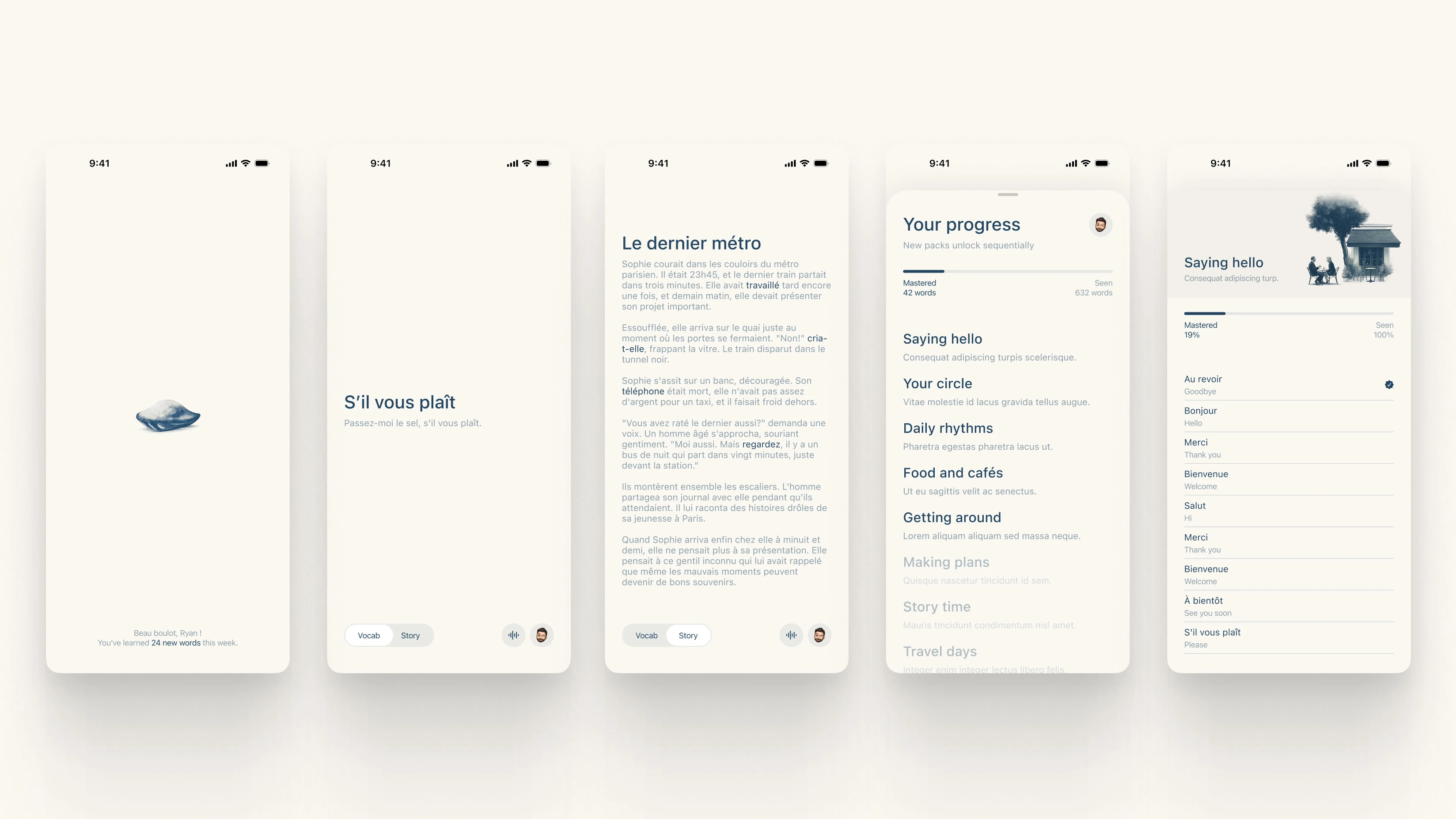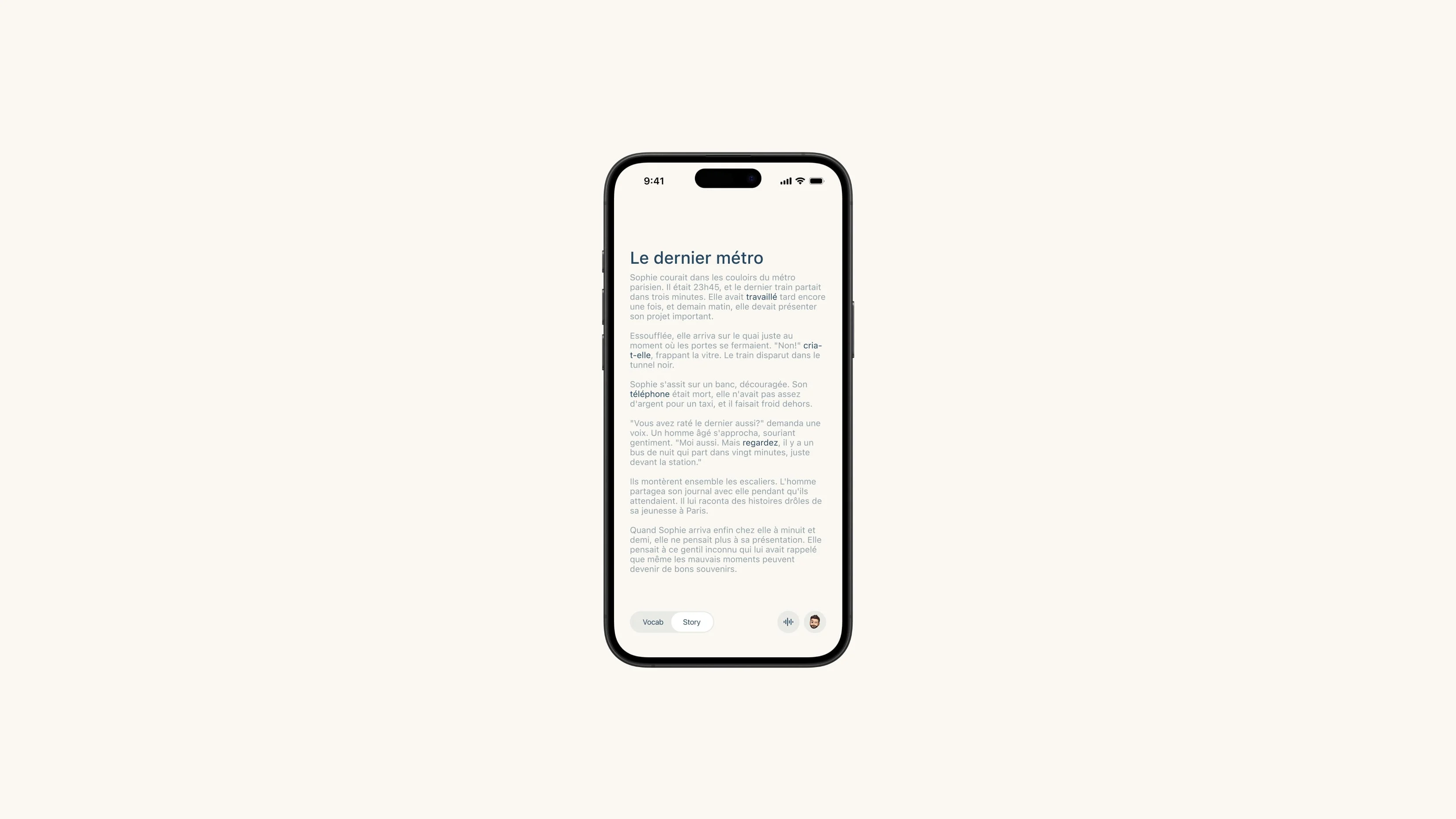 Madeleine is a French learning app built around two core modes: vocabulary flashcards powered by spaced-repetition, and interactive stories with tap-to-translate. It's designed for learners who want a focused, distraction-free study experience.