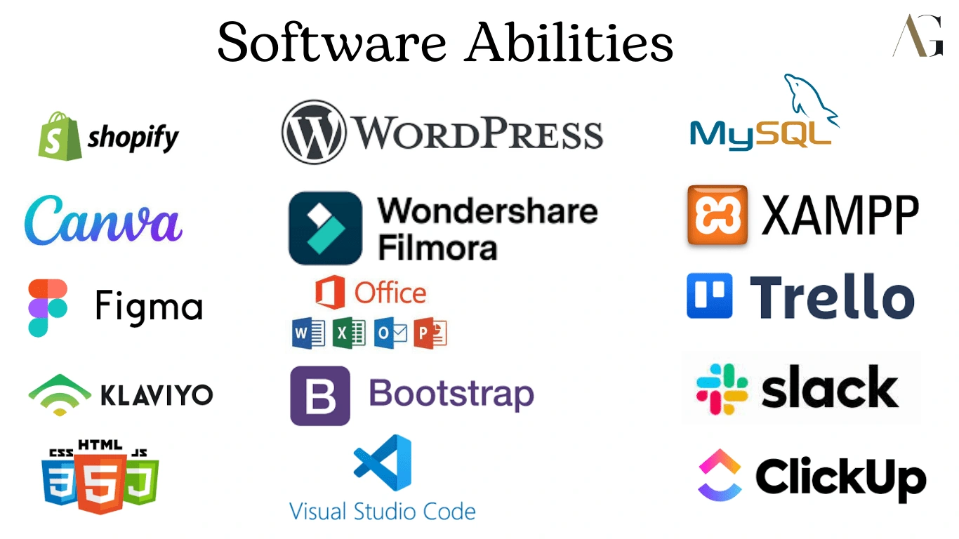 ✨FIGMA ✨SHOPIFY ✨CANVA ✨VISUAL STUDIO CODE | HTML CSS & JSS | BOOTSTRAP | ✨ASANA | TRELLO | SLACK | CLICK-UP | ✨GOOGLE WORKSPACE | GDRIVE | GFORMS | CALENDAR |