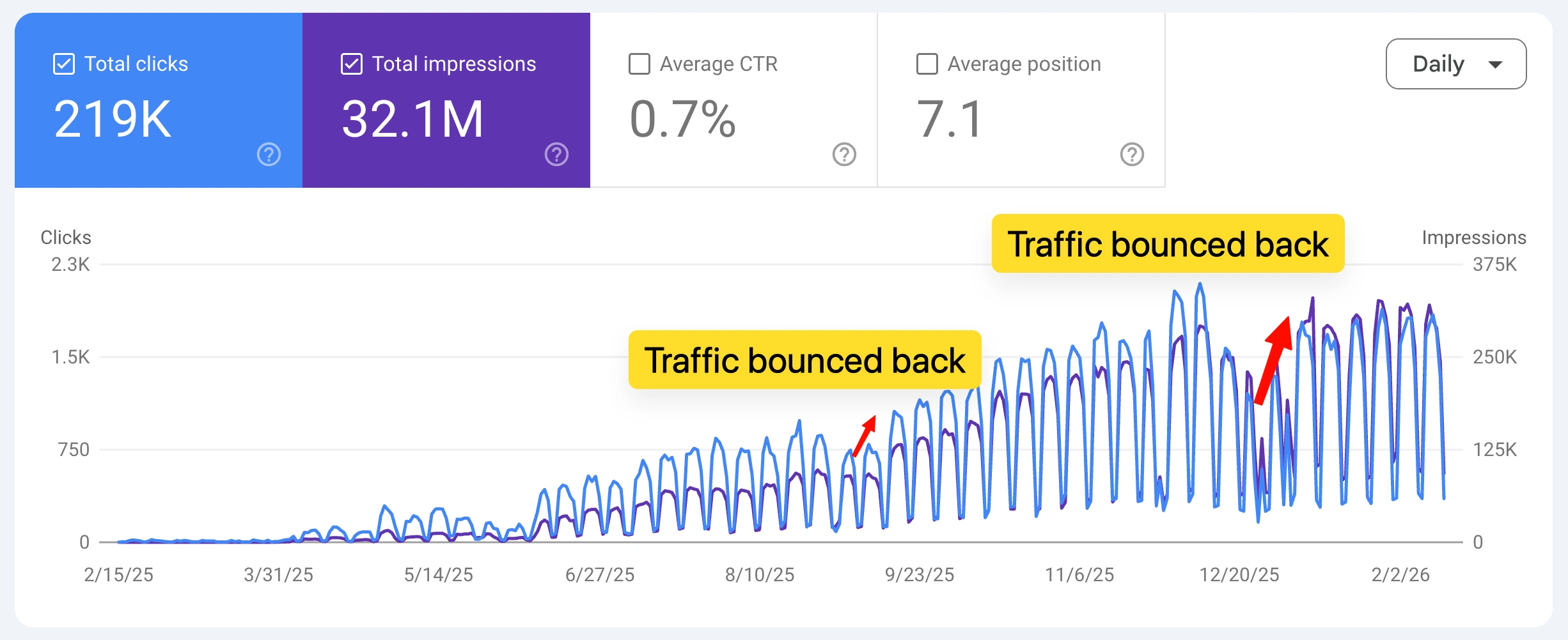 219K Organic Clicks (Cumulative)